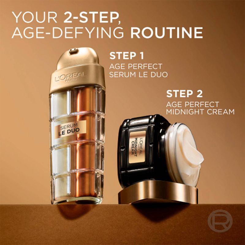- L'Oreal Paris Age Perfect Serum Le Duo: Ready to defy aging? Experience the power of 2 serums in 1 with L'Oreal Paris Serum Le Duo, targeting 10 signs of aging for visibly younger-looking skin.