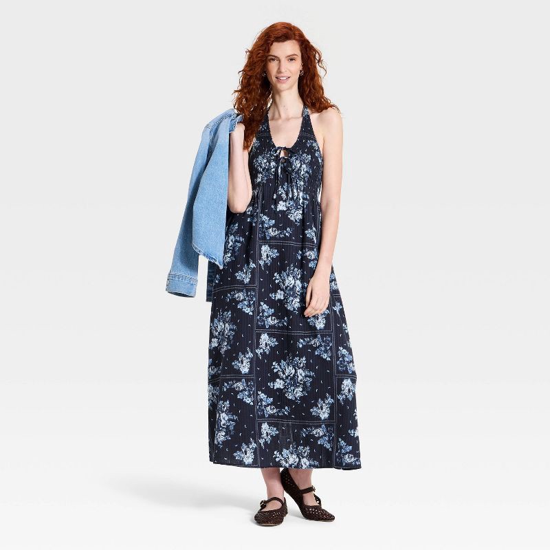 Women's Printed Maxi Sundress - Universal Thread™ Navy Blue L