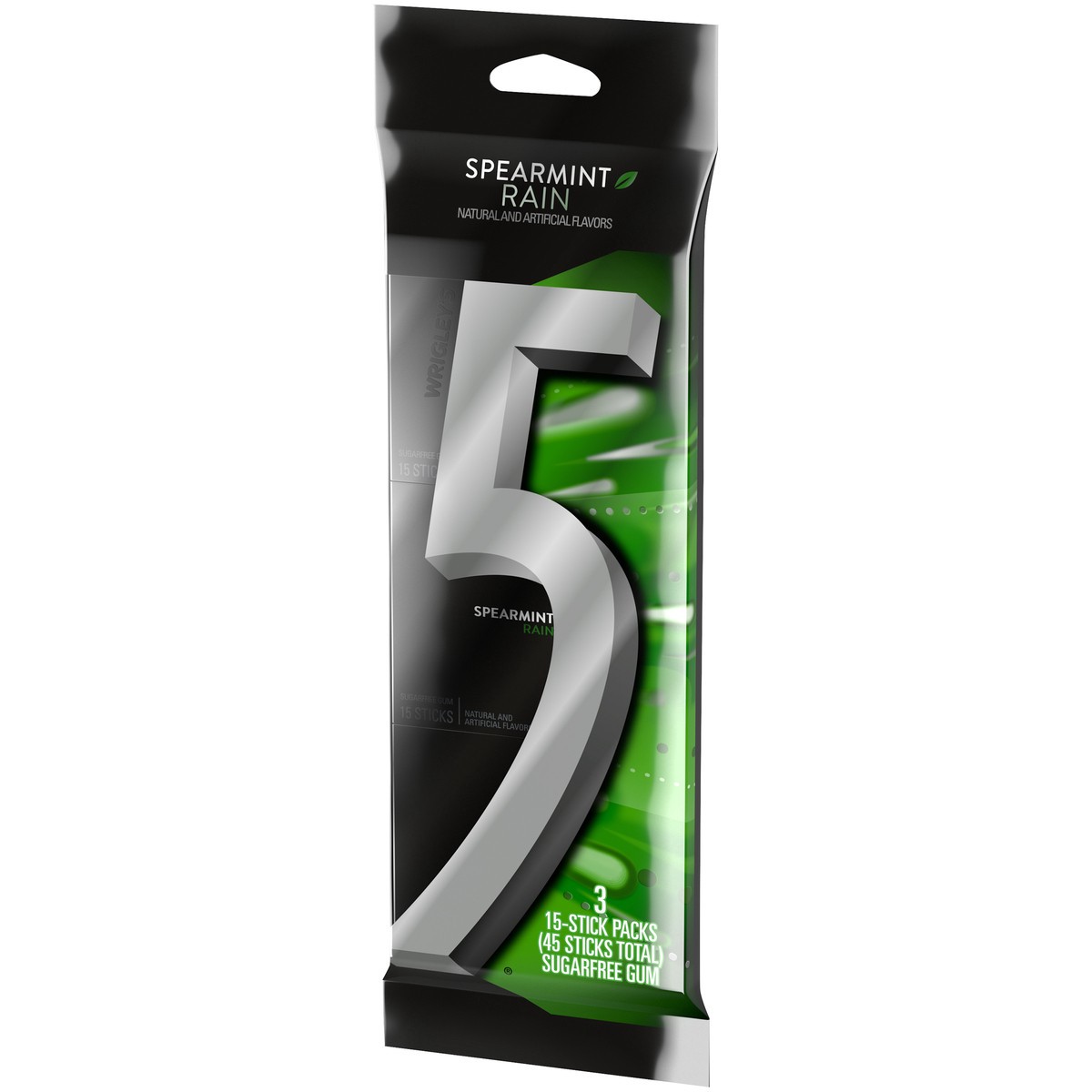 5 Gum Spearmint Rain Sugar Free Chewing Gum - 3-15 Count
