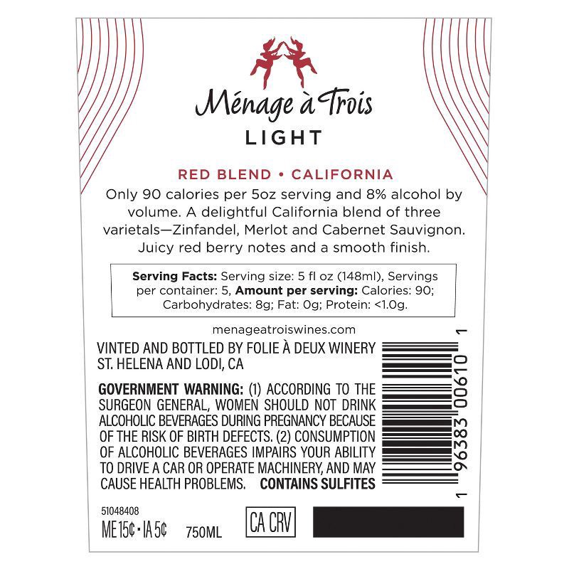 Menage a Trois California Red Blend exposes the fresh, ripe, jam-like fruit that is the calling card of California wine. This red wine blend includes Zinfandel with blackberry and raspberry jam flavor…