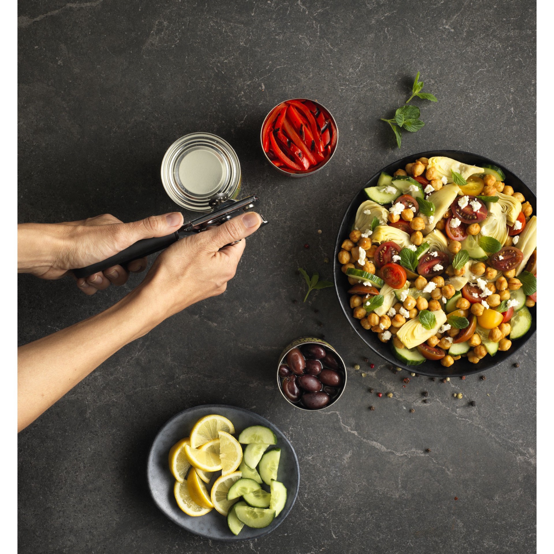 Our GoodCook Ready Can Opener punctures open cans of all types, with little effort. Rotate the oversized turn knob to engage the high-carbon stainless steel blade that cuts around the can with a preciā¦