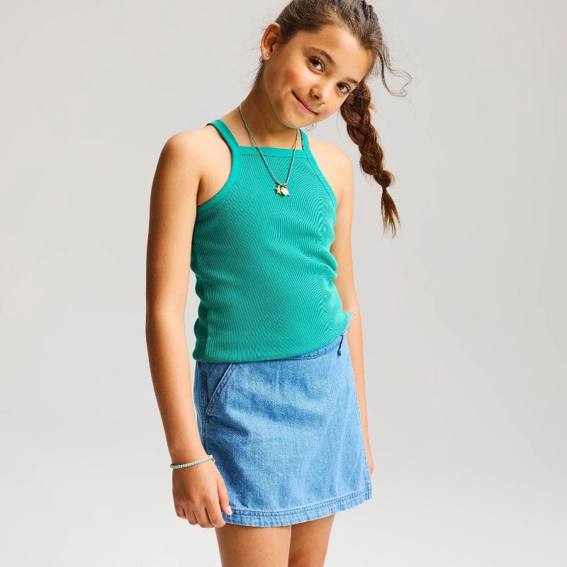 Girls' Washed Ribbed Tank Top - Cat & Jack™ Green M