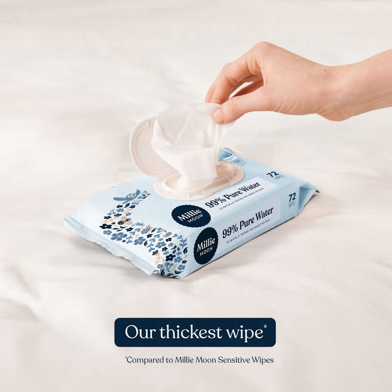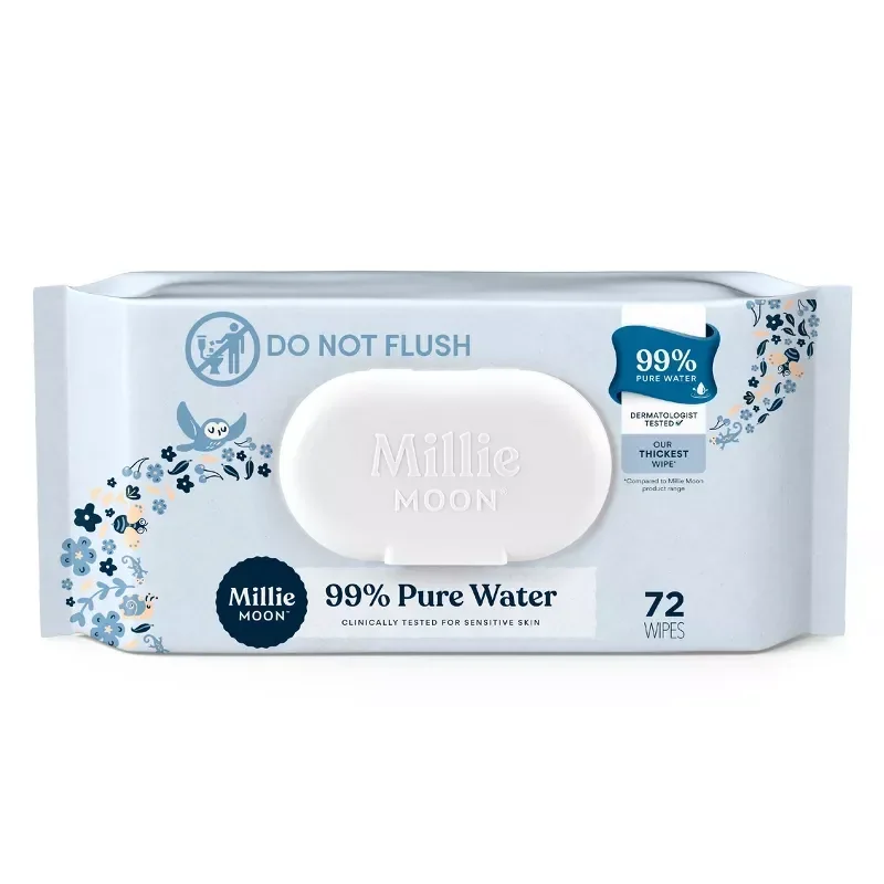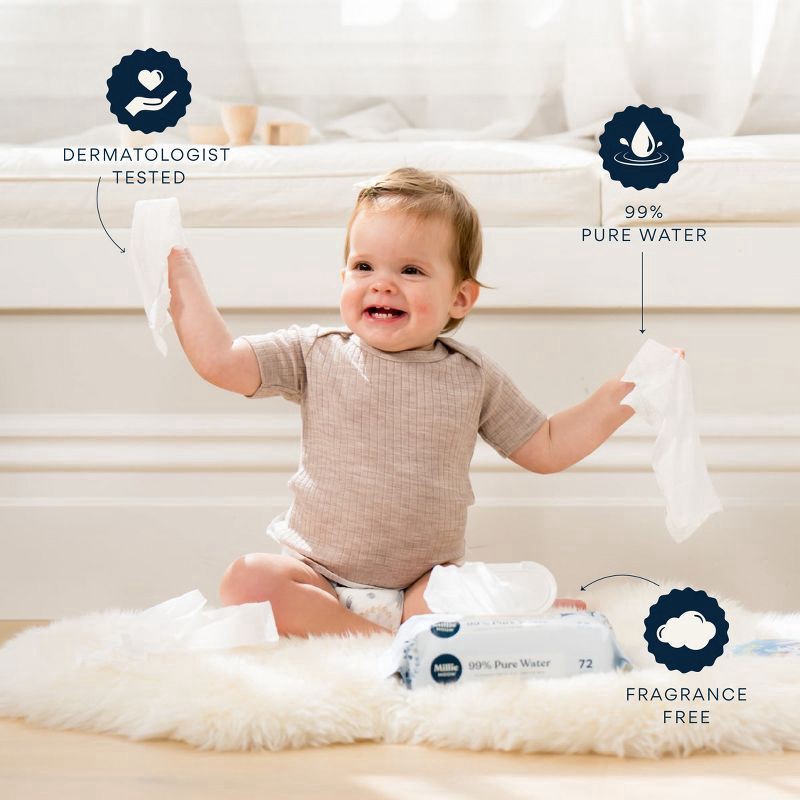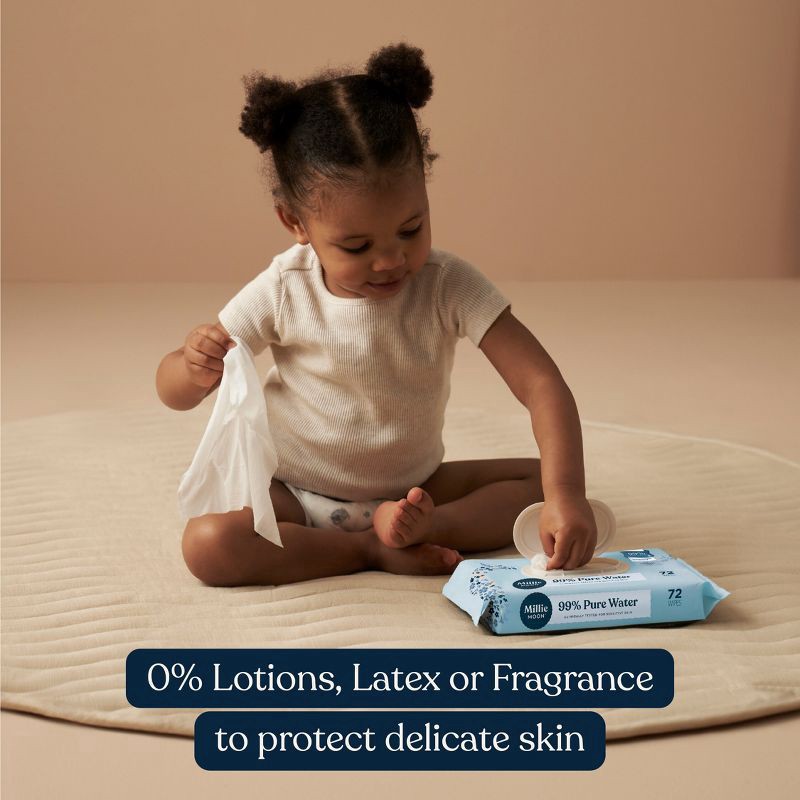 Designed to hydrate, cleanse and soothe delicate skin, Millie Moon 99% Pure Water Baby Wipes are our purest wipes with the fewest ingredients.* Made with over 99% water to help keep your baby's skin s…