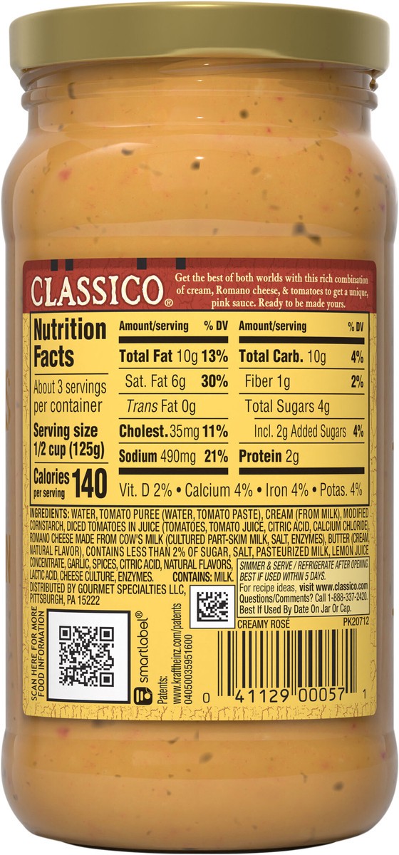 - One 15 oz jar of Classico Creamy Rosé Pasta Sauce
