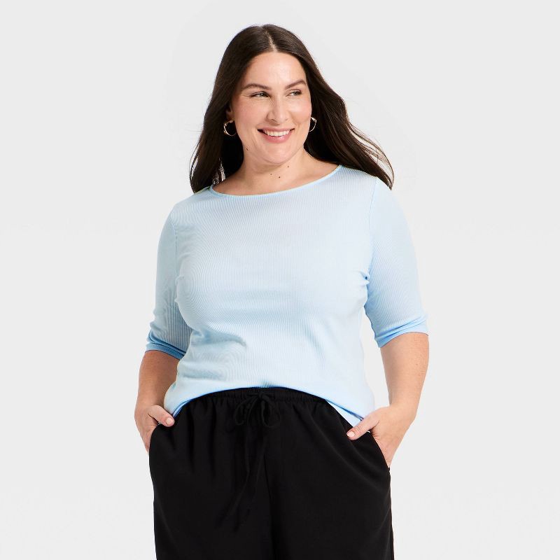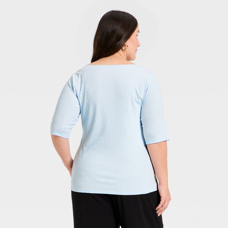 Women's Modern Ribbed Elbow Sleeve Top - A New Day™ Light Blue XXL