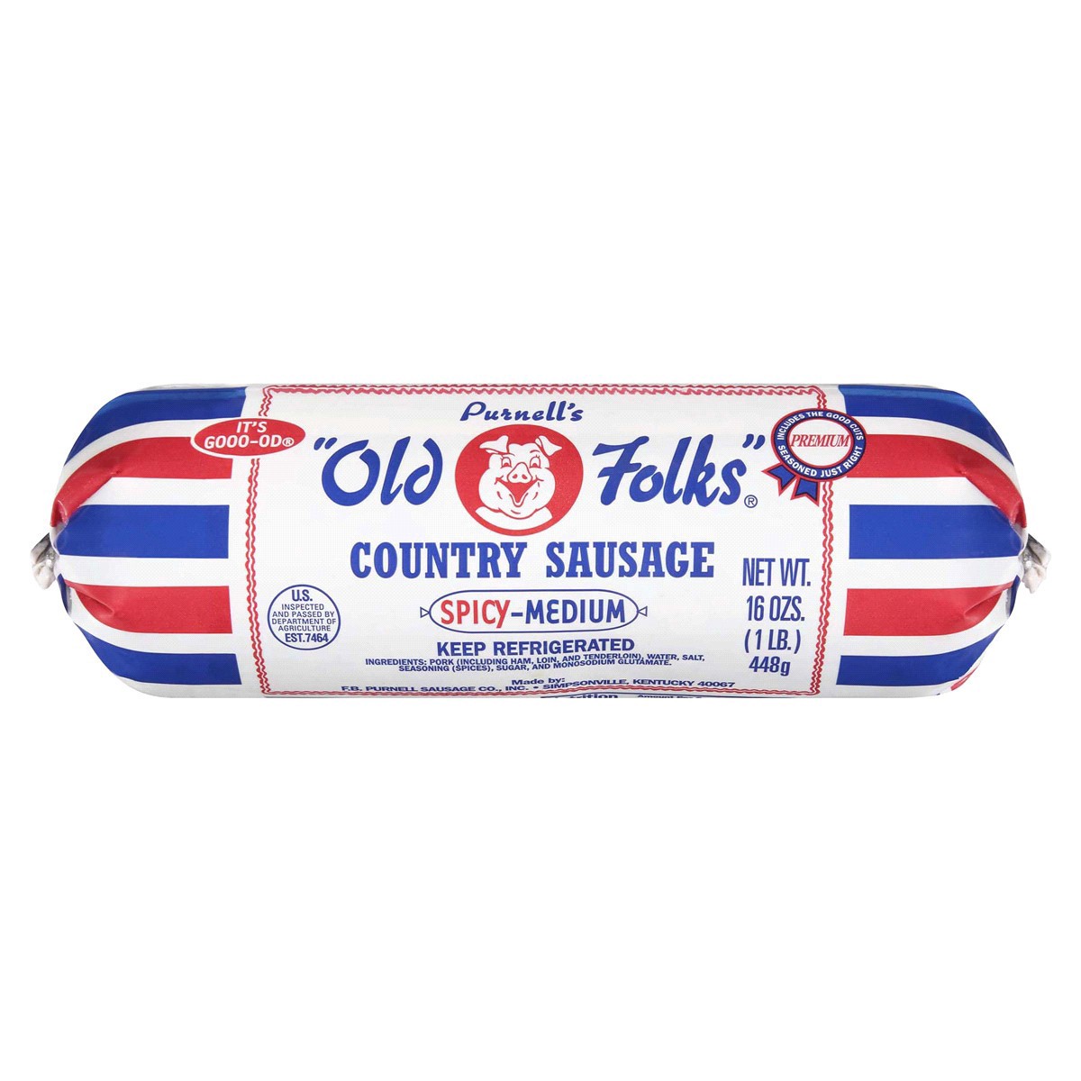 Purnell's "Old Folks" Spicy-Medium Country Sausage Roll, 16 oz