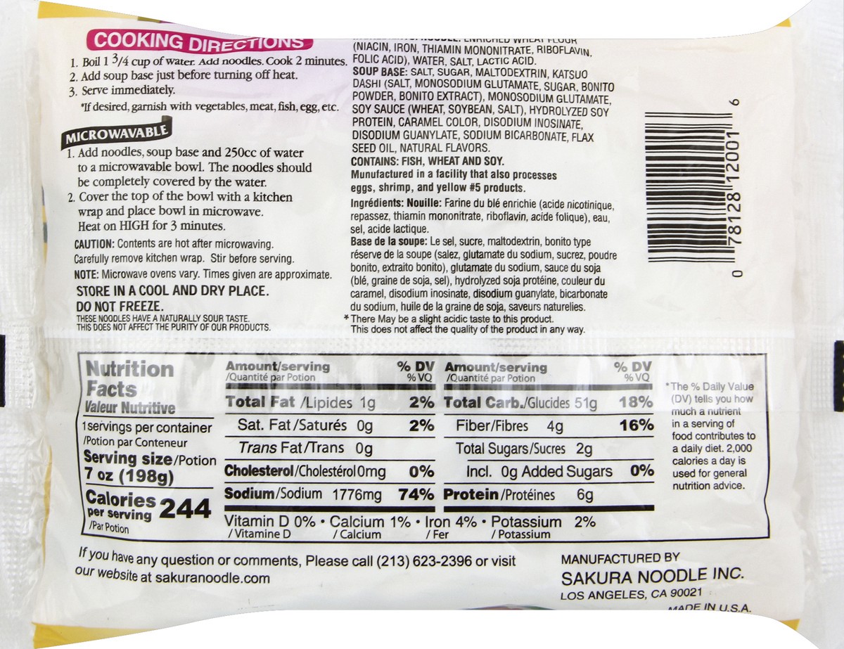 No cholesterol. Microwavable. If you have any question or comments, please call (213) 623-2396 or visit our website at sakuranoodle.com. Made in USA.