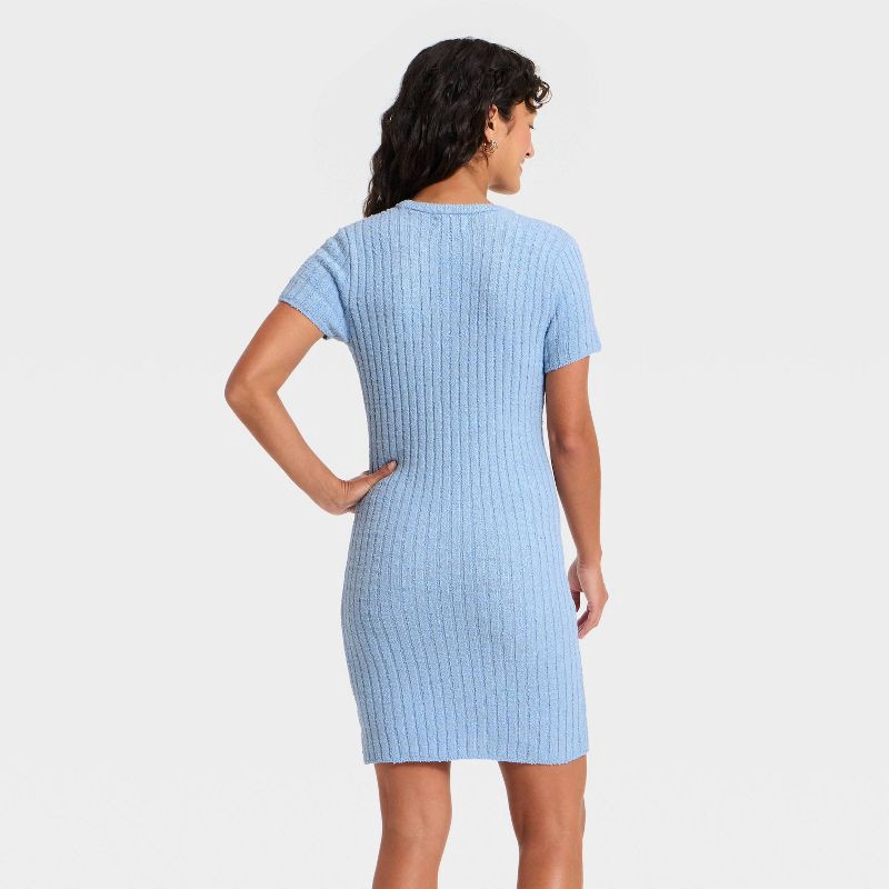 Women's Short Sleeve Rib Mini Sweater Dress - Universal Thread™ Blue L