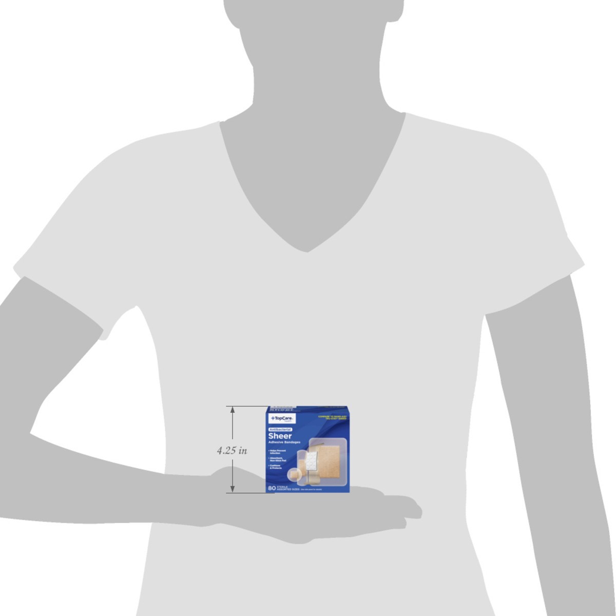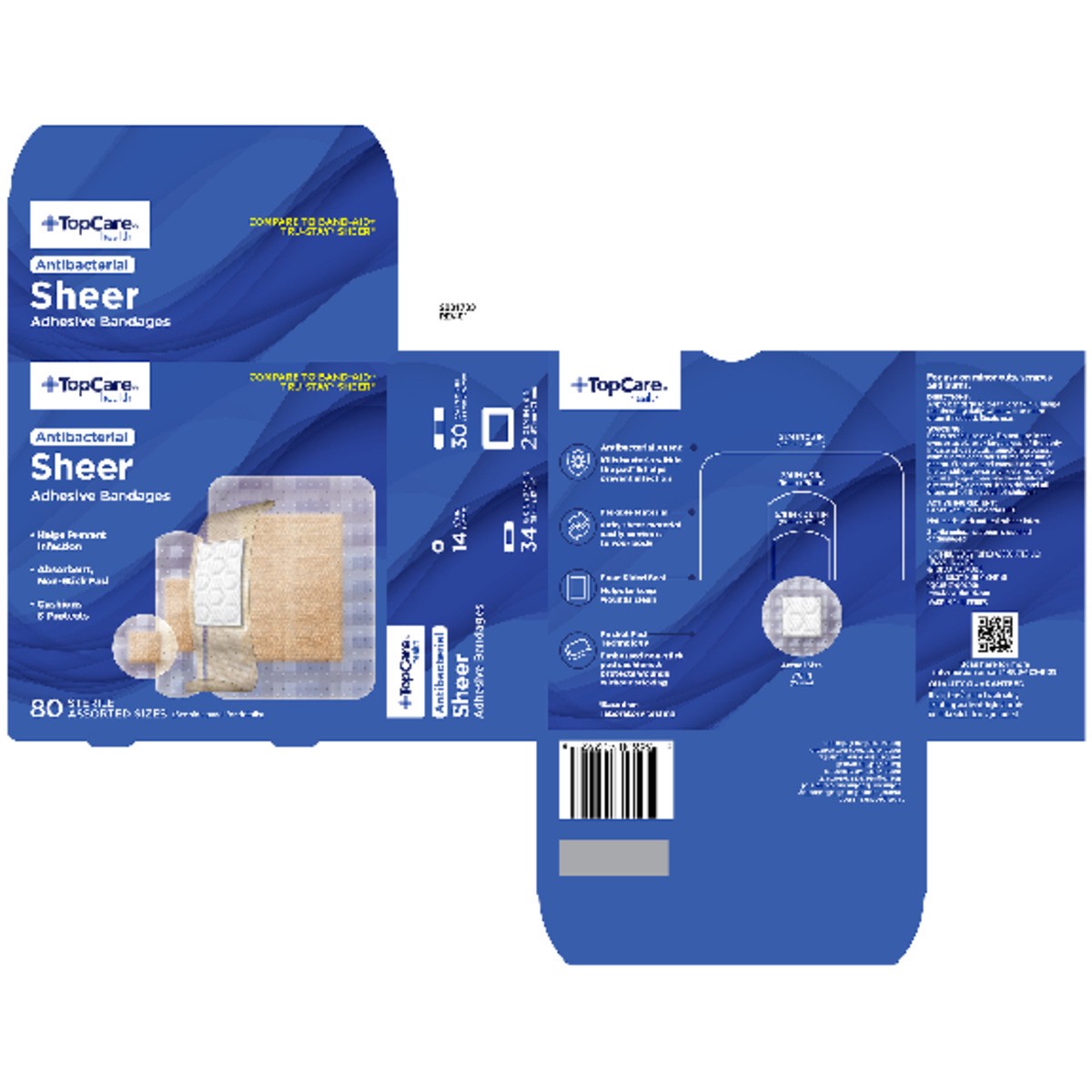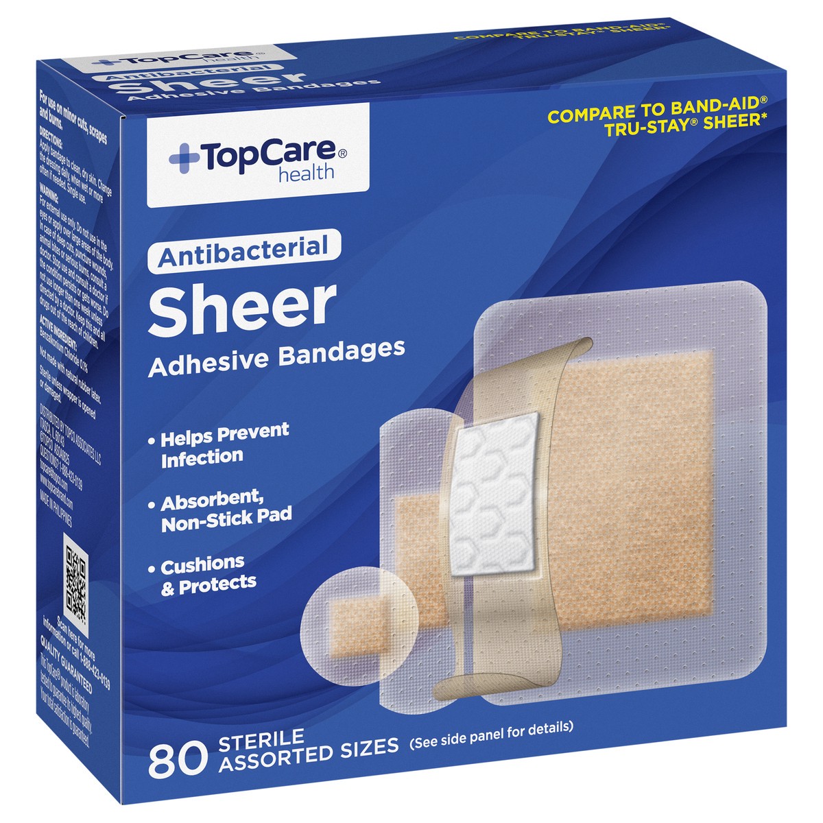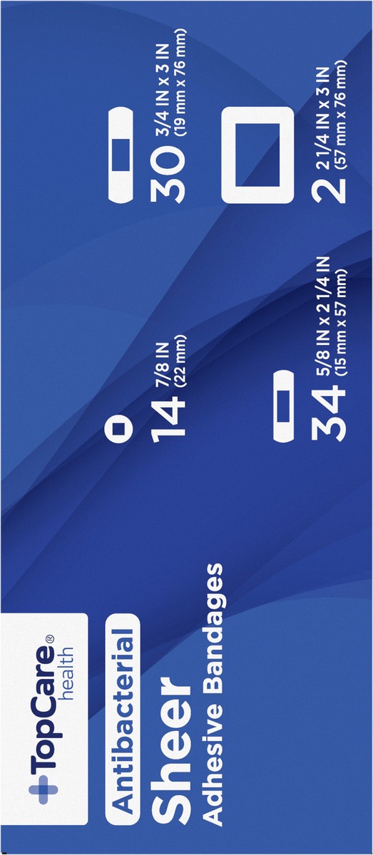 TopCare Antibacterial First Aid Antiseptic Assorted Bandages, Sheer, 80 ct