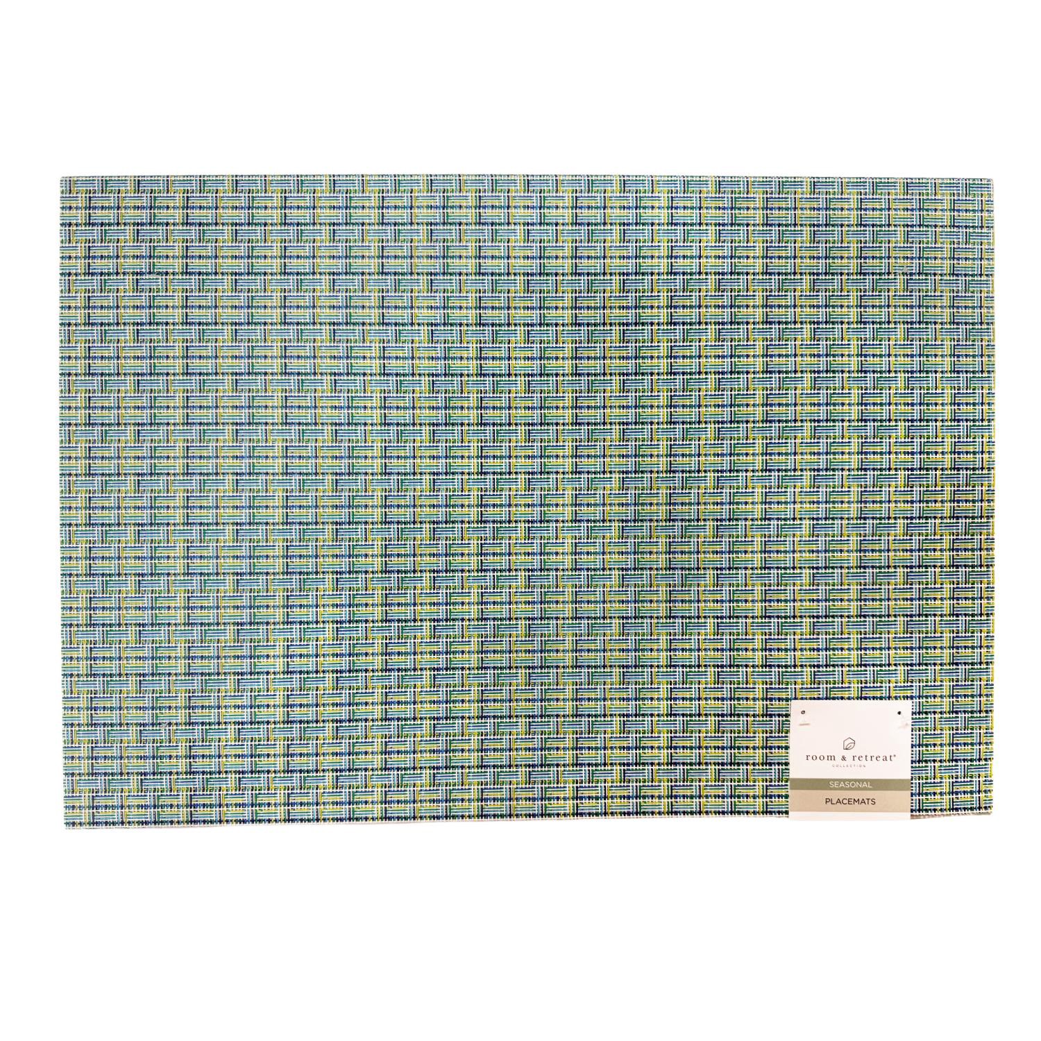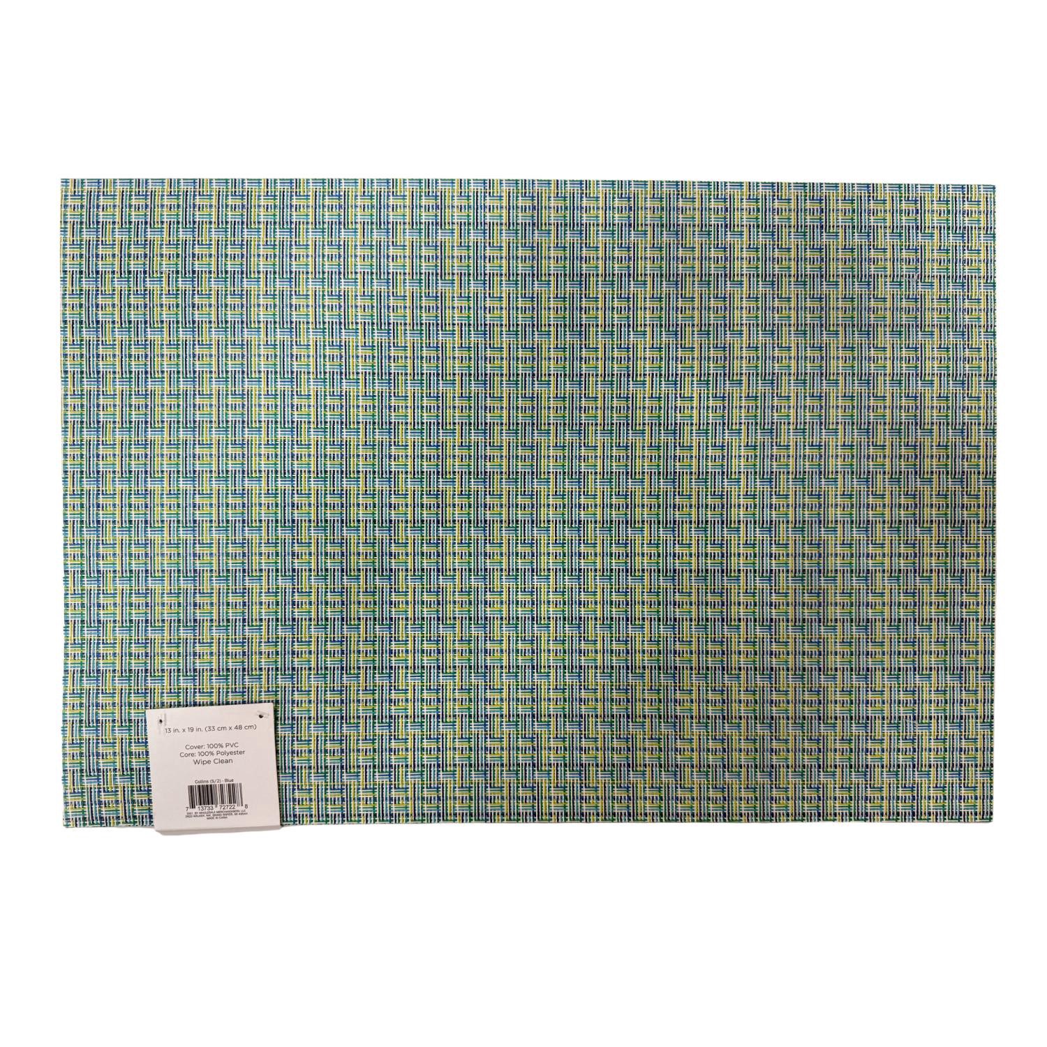 Room & Retreat Seasonal Collins Woven Vinyl Placemat, Blue, 2 Pack, 13 In X 19 In