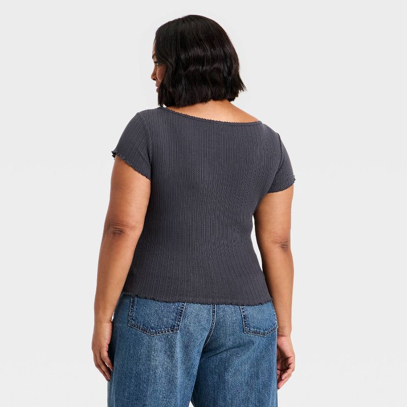 Create a gorgeous outfit with this Short-Sleeve Pointelle Sweetheart-Neck T-Shirt from Universal Thread™. This short-sleeve tee features an eye-catching pointelle pattern, a scoop neckline and lettuce…