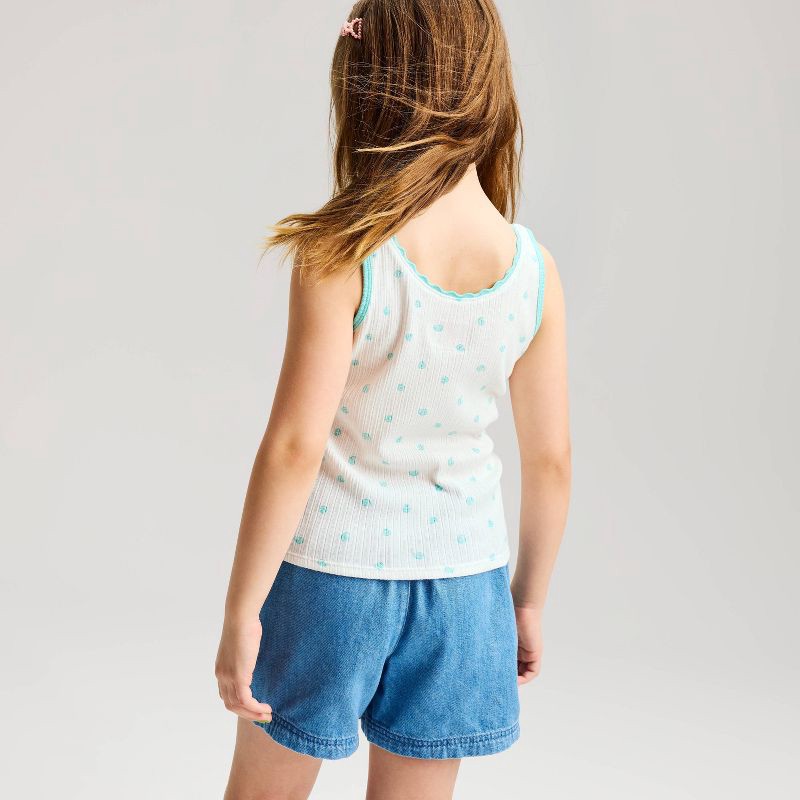 Upgrade their everyday wardrobe with this Ribbed Pointelle Tank Top from Cat & Jack™. Made from cotton-recycled polyester blend pointelle fabric, this regular-fit top offers all-day cool comfort. Desi…