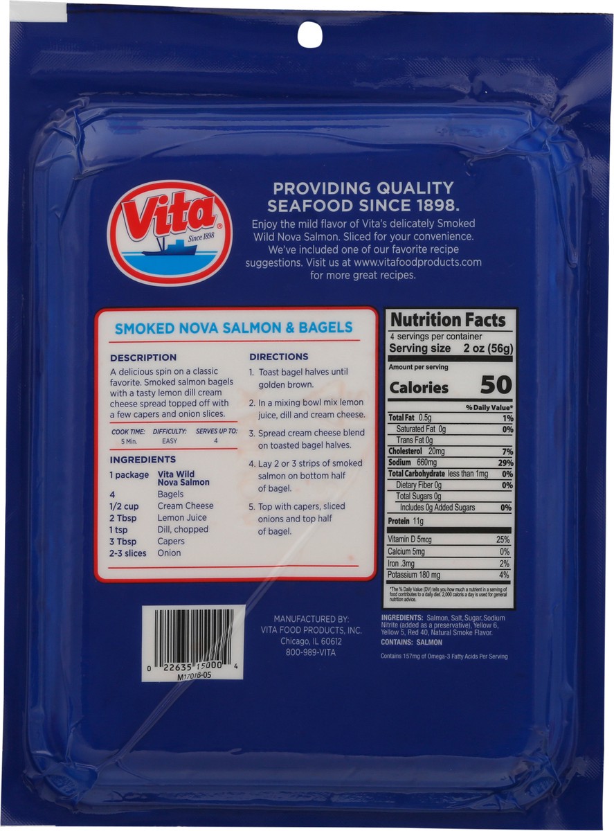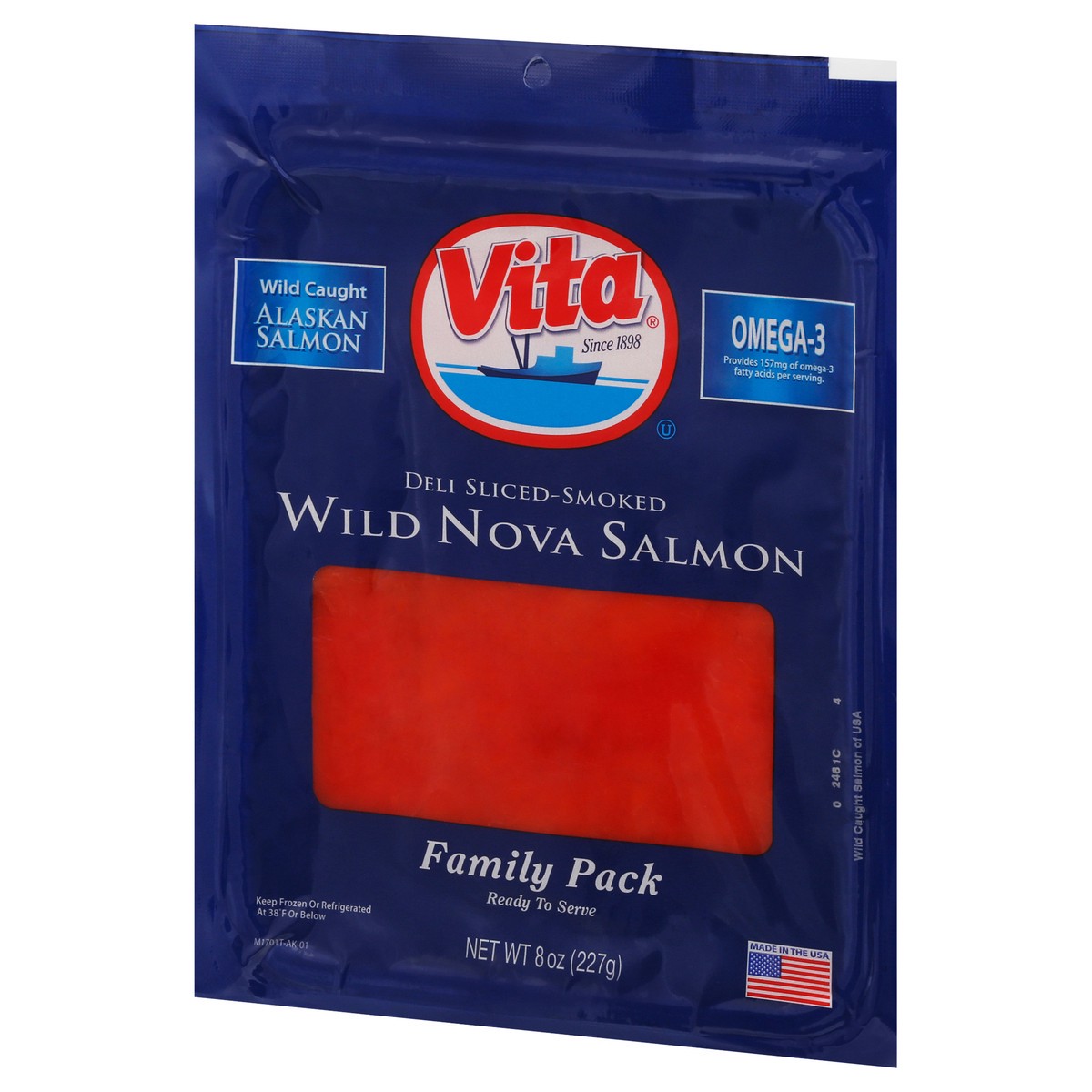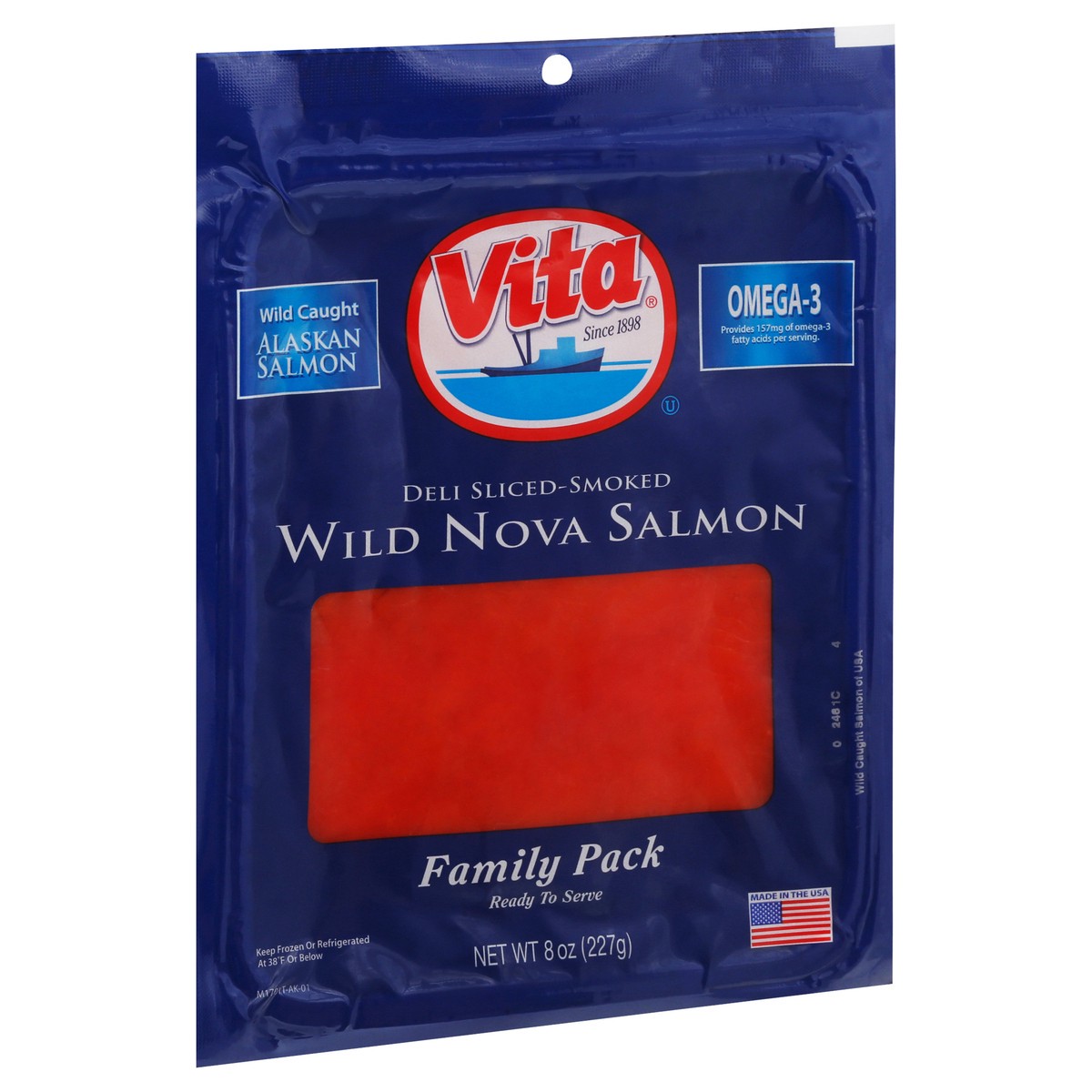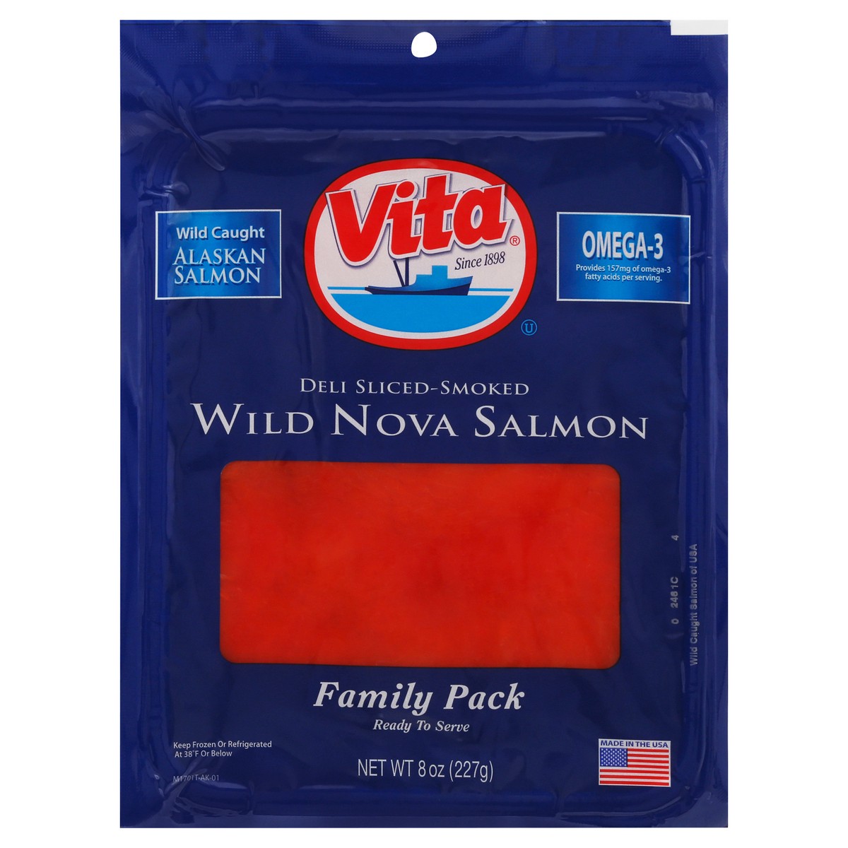 Wild caught Alaskan salmon. Since 1898. Ready to serve. Providing quality seafood since 1898. Enjoy the mild flavor of Vita's delicately smoked wild nova salmon. Sliced for your convenience. We've inc…
