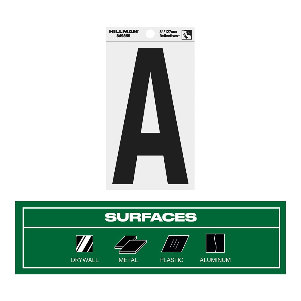 slide 1 of 6, Hillman 5-in Reflective Black Letter A, 1 ct