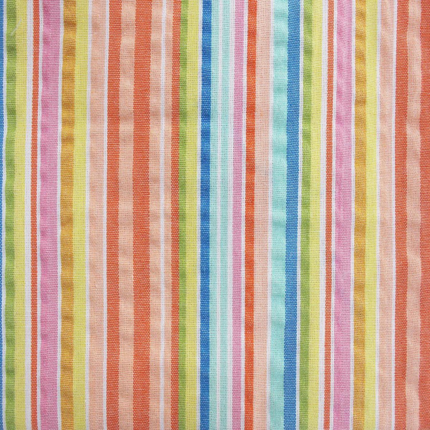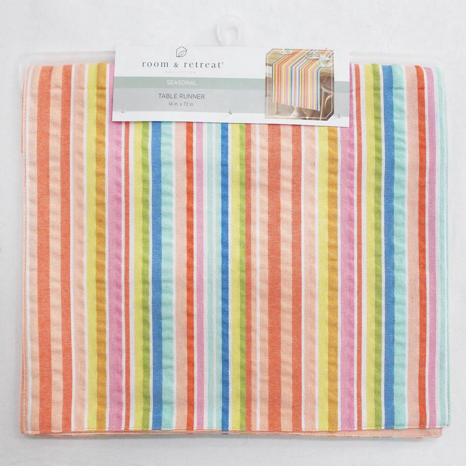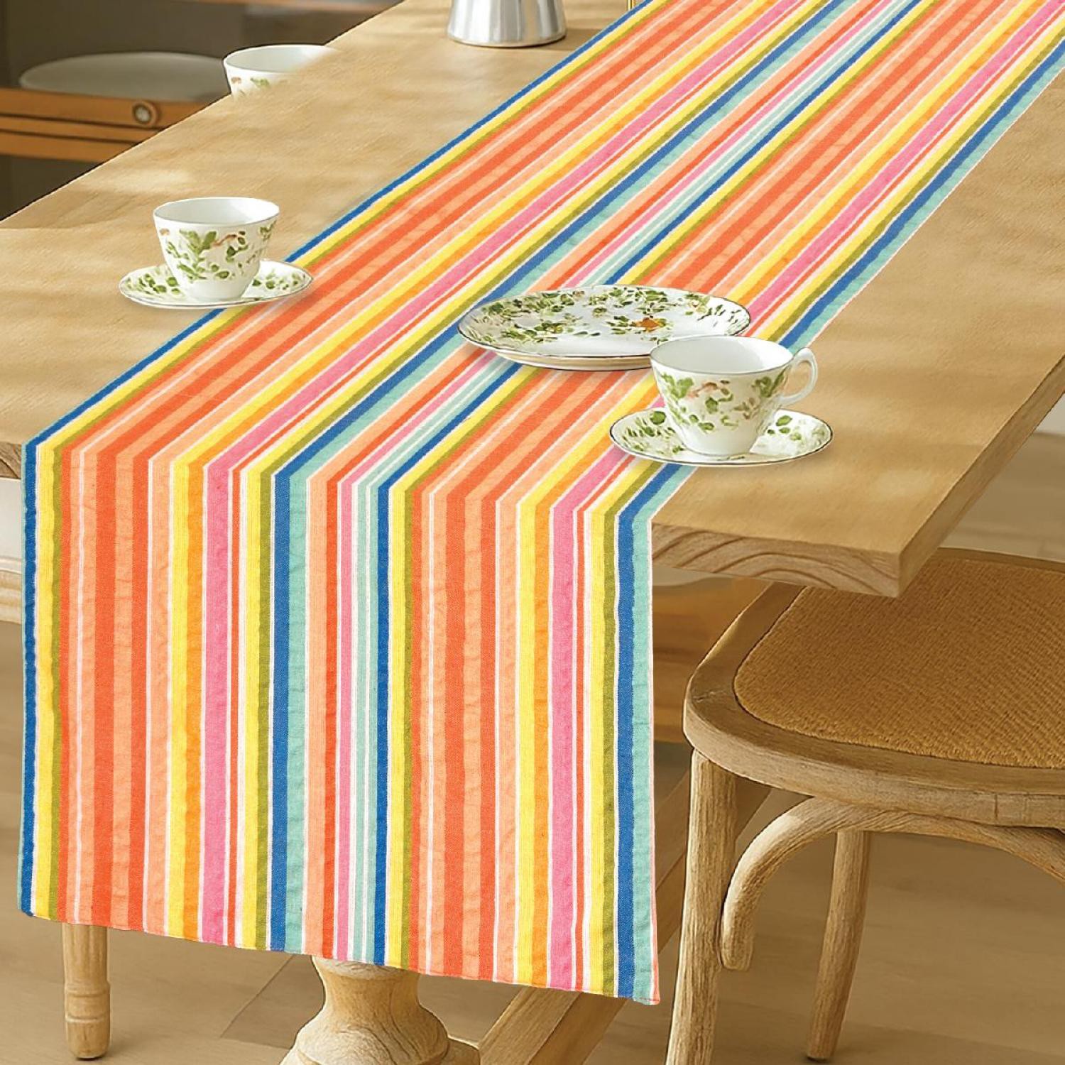 A light seersucker runner with multicolor striping. Adds easy texture and subtle cheer to dining areas.