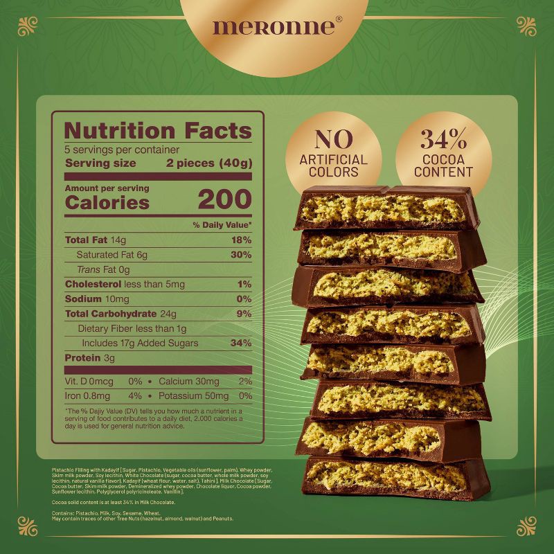 - PERFECT FOR GIFTING: Elegantly presented, the Meronne Luxury of Dubai Chocolate Bar makes a delicious gift for holidays, special occasions, or as part of a luxury chocolate box.