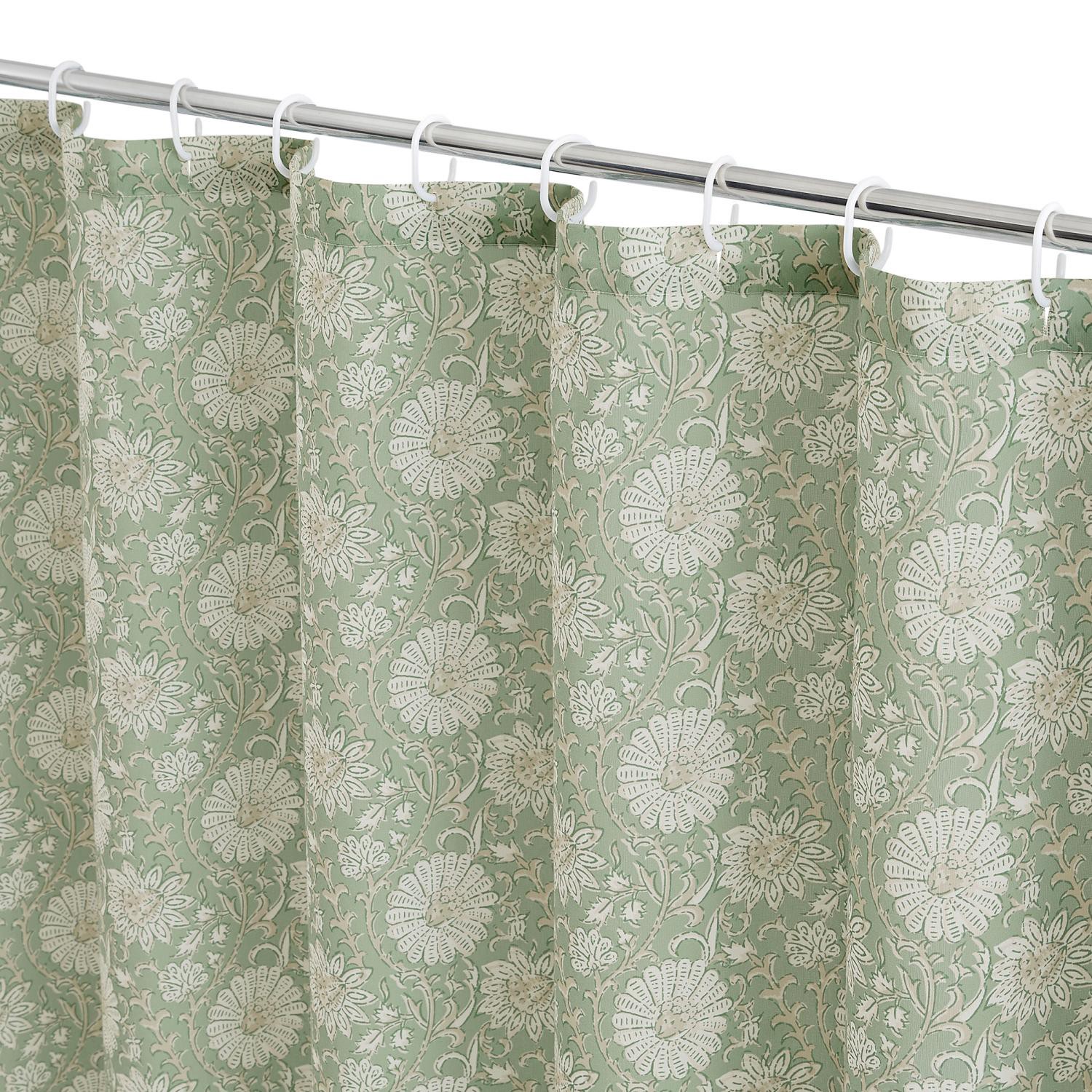 Room & Retreat Darsha Block Print Fabric Shower Curtain , 70 In X 72 In, Sage Green