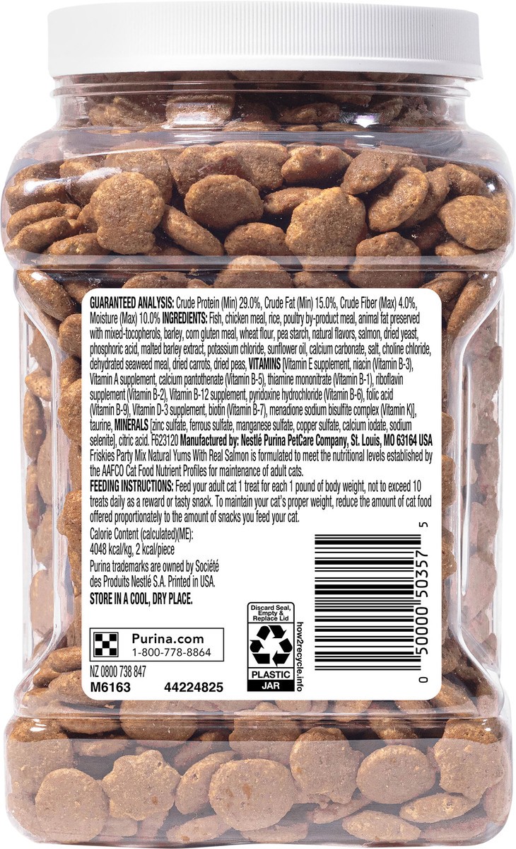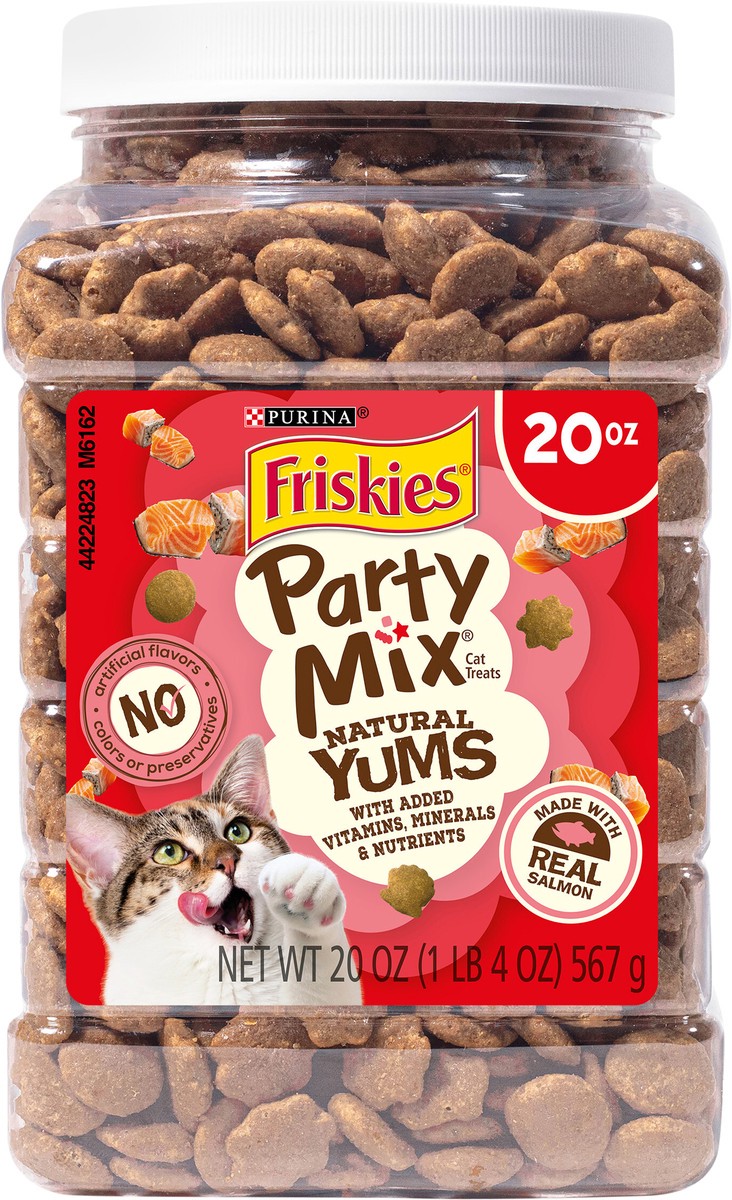 Make every moment feel like a celebration when you offer up Purina Friskies Party Mix Natural Yums With Real Salmon With Added Vitamins, Minerals and Nutrients adult cat treats. Made with real fish as…