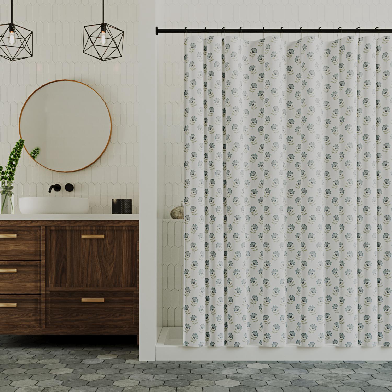 Room & Retreat Ditsy Floral Printed Fabric Shower Curtain, 70 In X 72 In, Blue