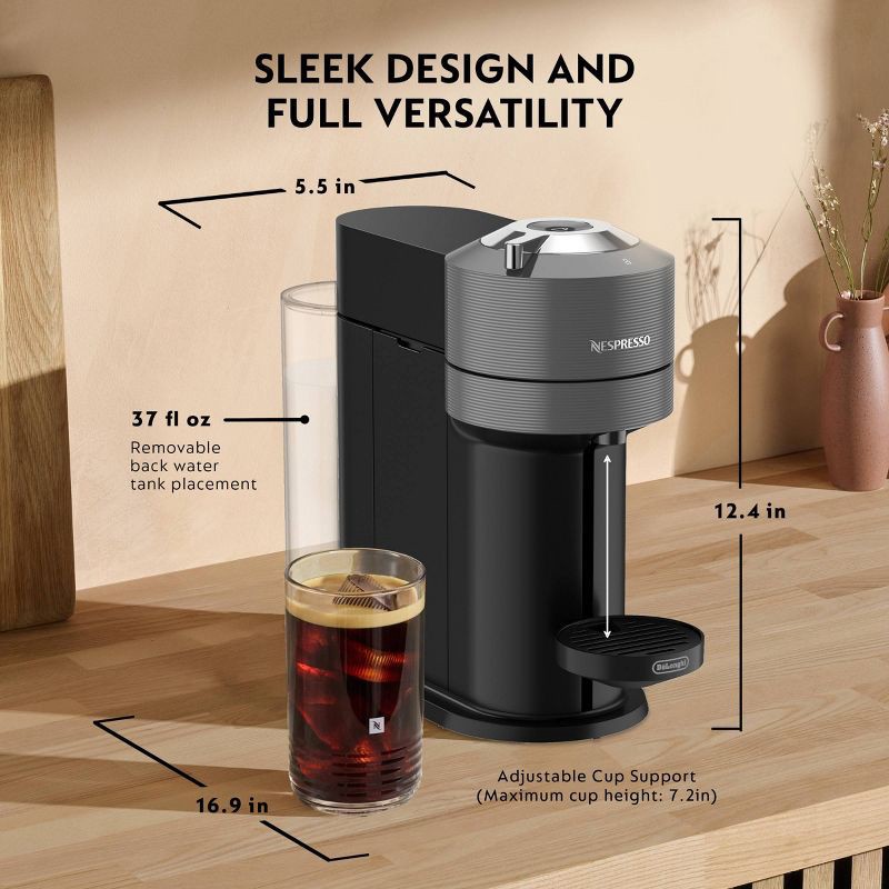 Nespresso Vertuo Next Coffee Maker and Espresso Machine by DeLonghi Gray: Compatible with Vertuo Line, 12 Capsules Included