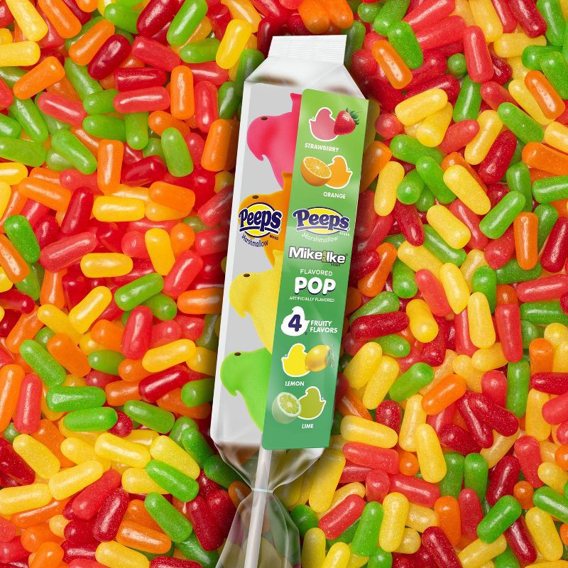 - FUN & DELICIOUS FLAVORS - Each PEEPS® Pop has four MIKE AND IKE® Flavored Marshmallow Chicks - Strawberry, Lemon, Lime and Orange.