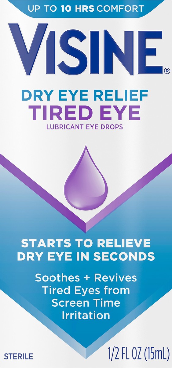- Visine Dry Eye Relief Tired Eye Lubricant Eye Drops to soothe and relieve dry