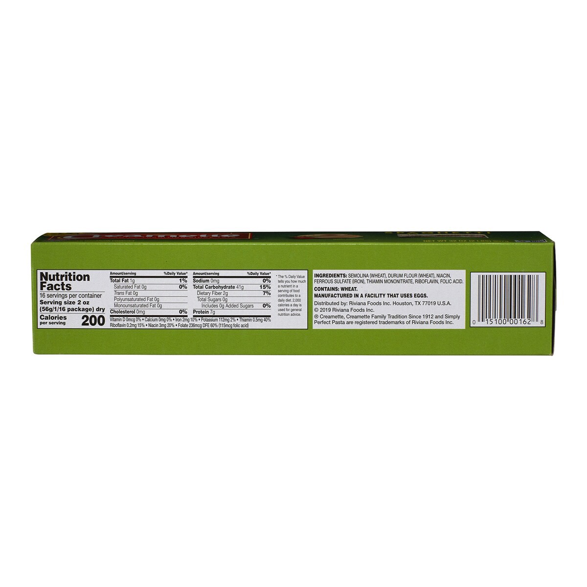 Semolina (Wheat); Durum Flour (Wheat); Niacin; Iron (Ferrous Sulfate); Thiamin Mononitrate; Riboflavin; Folic Acid.
