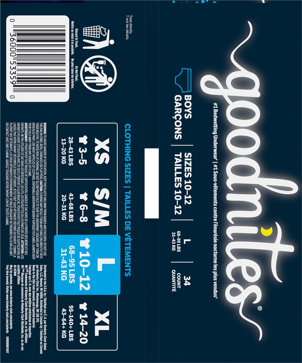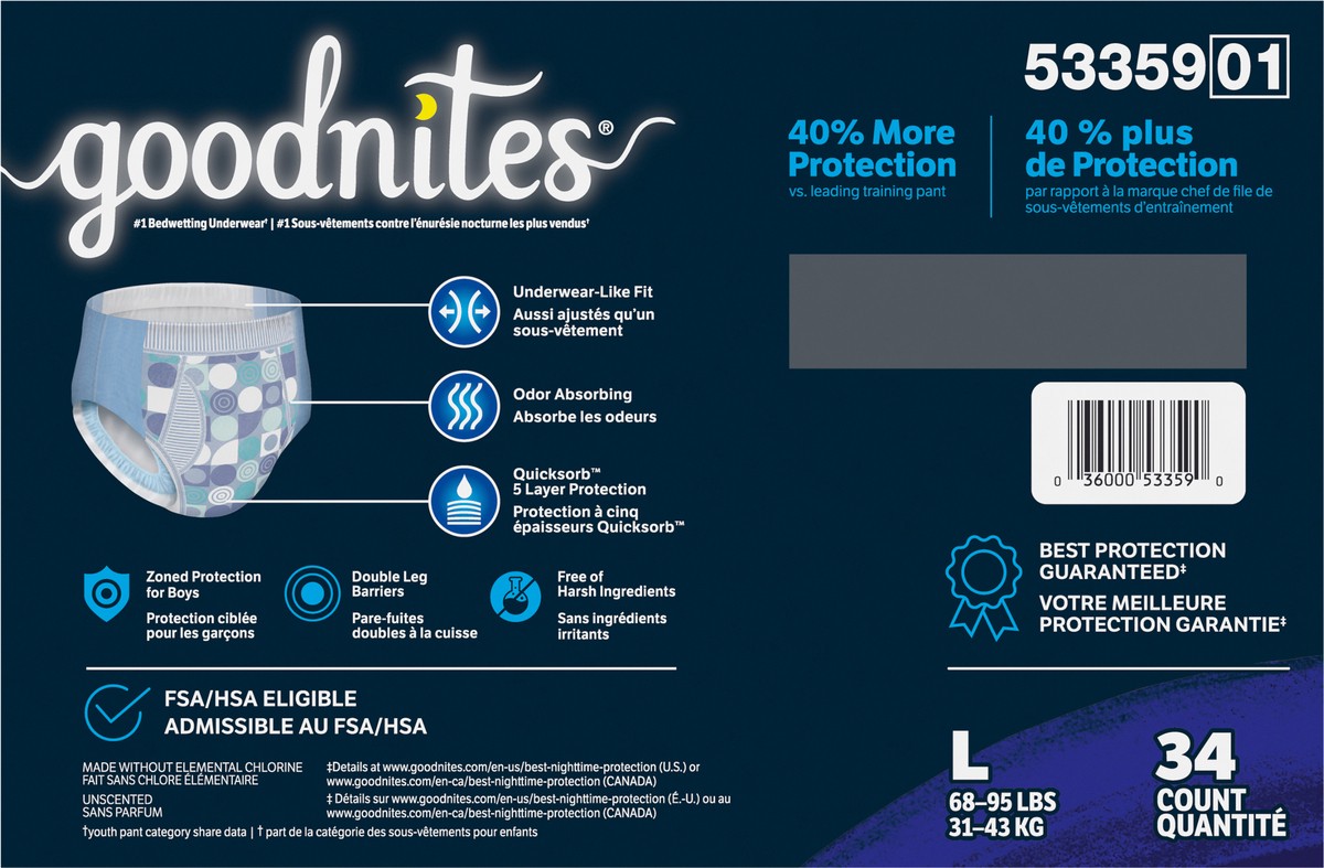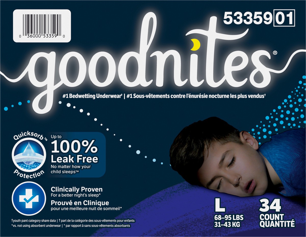 Goodnites Boys' Nighttime Bedwetting Underwear, Size Large (68-95 lbs), 34 Ct