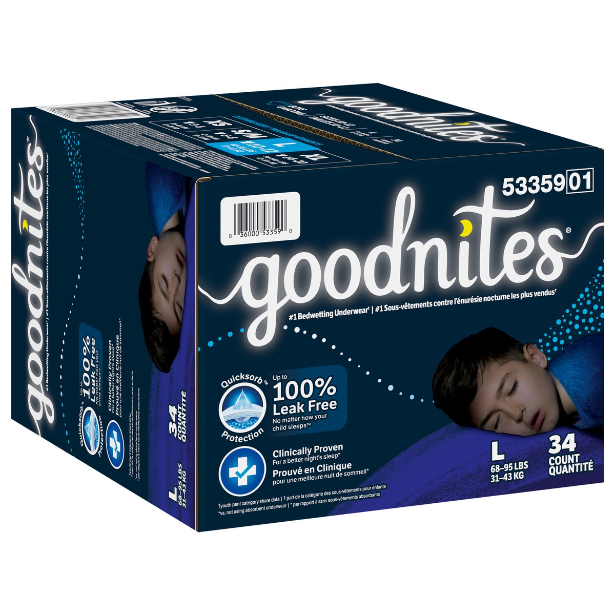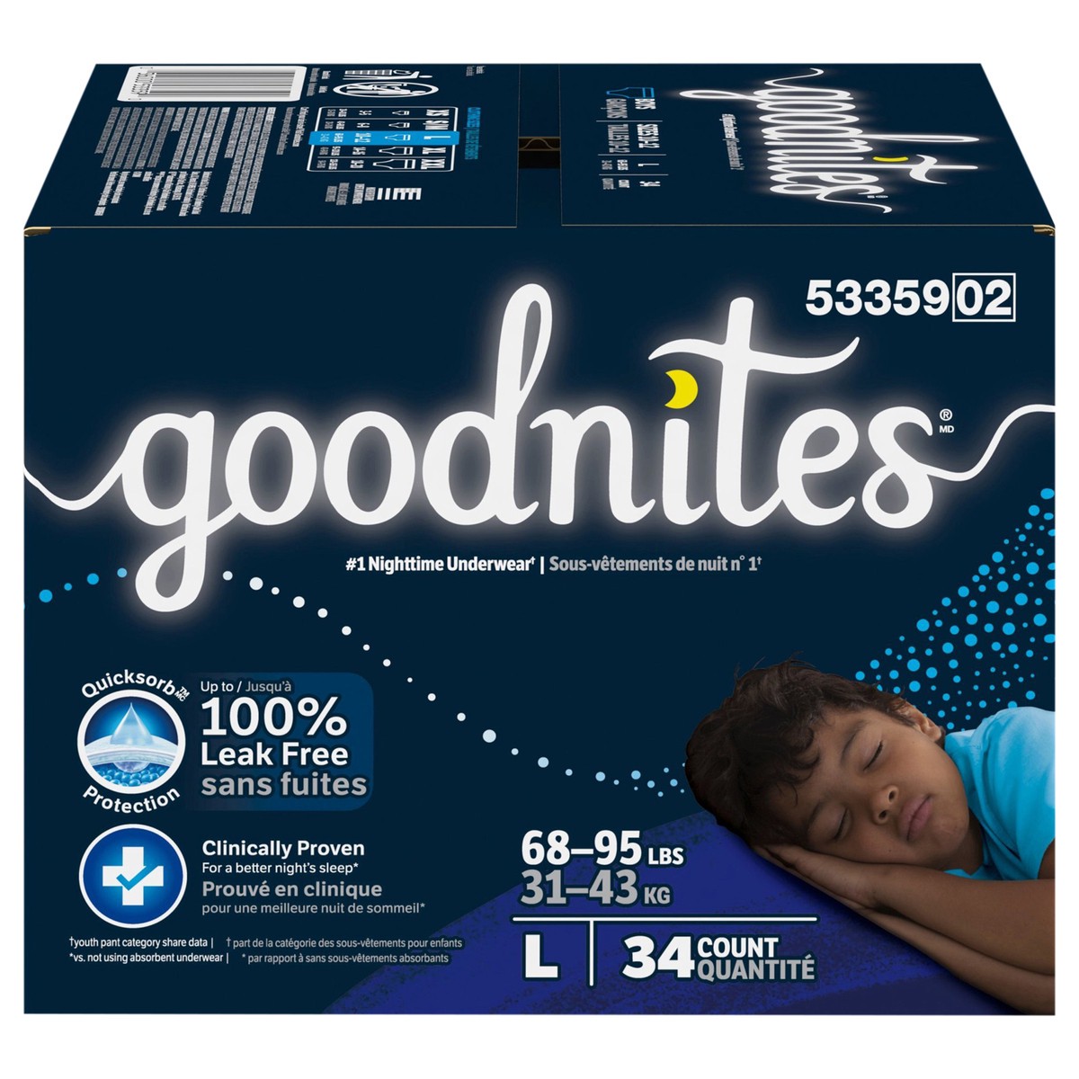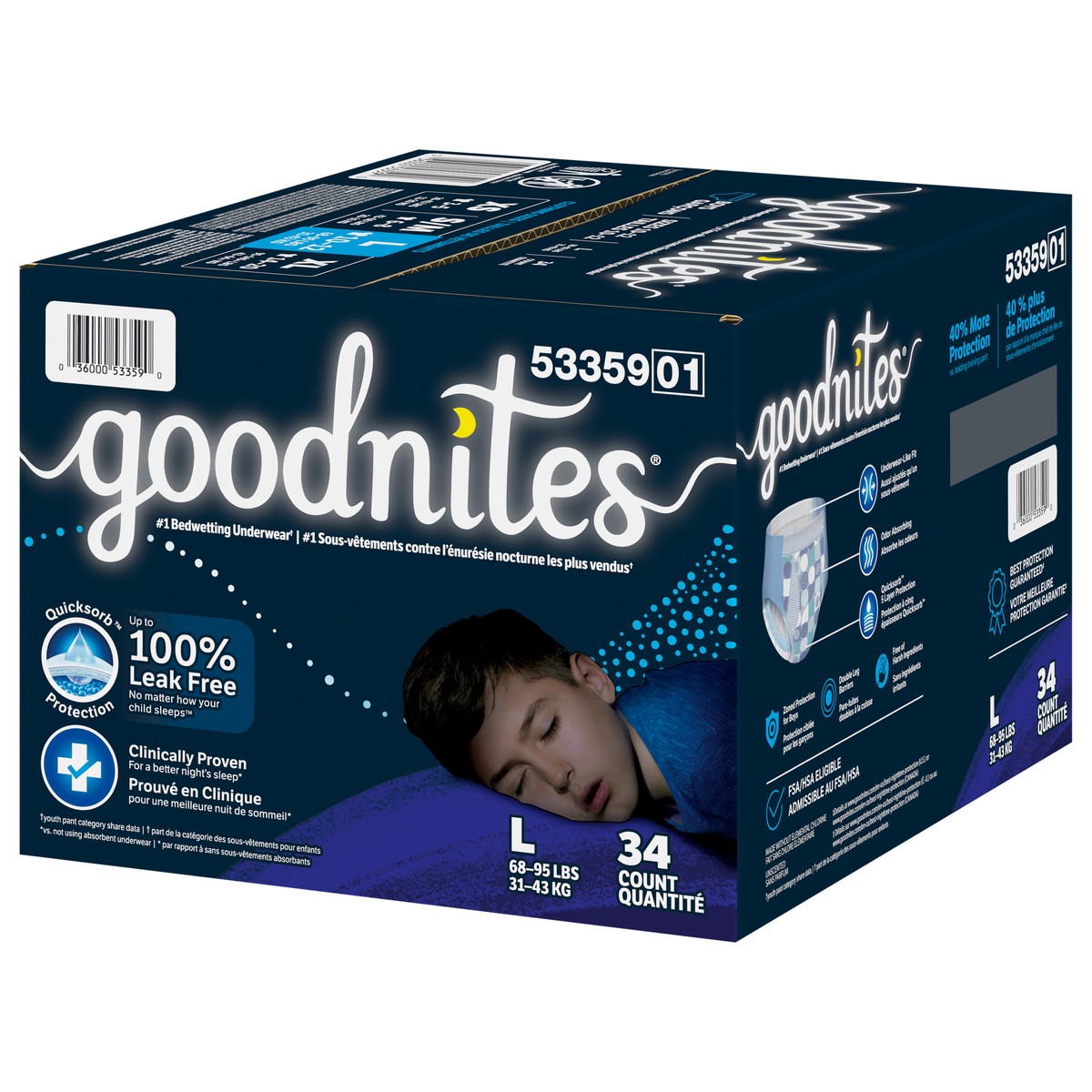 Goodnites Boys' Nighttime Bedwetting Underwear, Size Large (68-95 lbs), 34 Ct