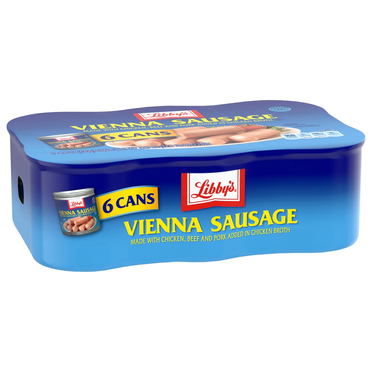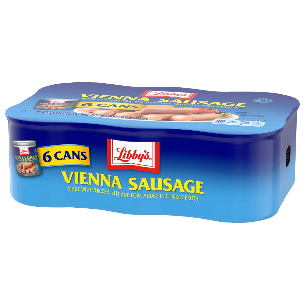 Libby's Vienna Sausages are made with chicken, beef and pork added for the Vienna sausage flavor you crave. These plump and tasty, ready-to-eat pantry staples are great for anytime snacking, lunches a…