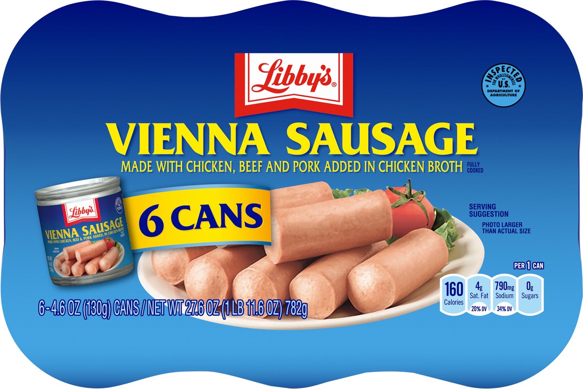 - One 27.6 oz pack of 6 count 4.6 oz. cans of Libby's Vienna Sausages