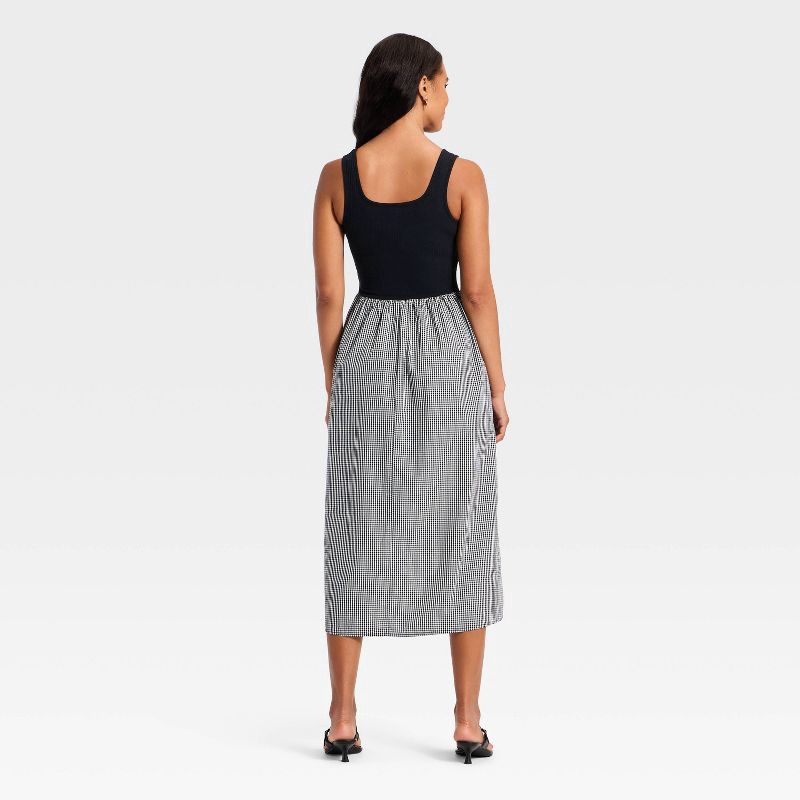 Women's Pullover Knit to Woven Midi Dress - A New Day™ Black/White Gingham M