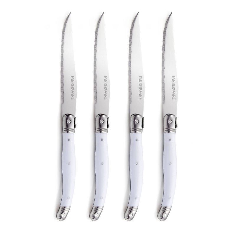 Add essential everyday knives while bringing a sleek, modern look to your kitchen with this Farberware 4- Piece Laguiole Steak Knife Set. The durable, high-carbon stainless steel blades have a sharp, …