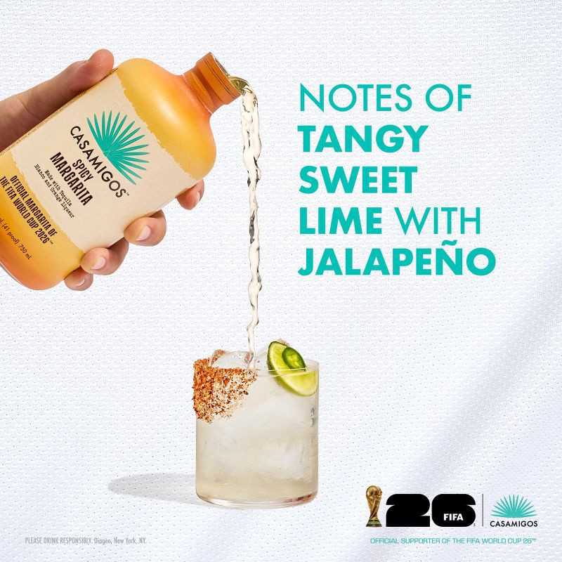 - One 375 mL bottle of Casamigos Spicy Ready-to-Serve Margarita, FIFA World Cup 2026™ Limited Edition20.5% ABV (41 proof)Exclusive limited-edition FIFA World Cup 2026™ bottle for soccer enthusiastsPerfect for match-day watch parties, soccer halftime toasts, and casual gatherings. The 375 mL size is ideal for sampling or as the perfect companion to bring along to FIFA World Cup 2026™ watch parties.110 calories per servingPour over ice and garnish with a lime wedge for the ultimate FIFA World Cup 2026™ experienceEnjoy premium spicy margarita quality without the prep work, ideal for FIFA World Cup 2026™ celebrationsFresh lime aroma meets subtle jalapeño, offering a tangy, sweet lime profile with notes of dried chili pepper. Enhanced by salty and orange liqueur undertones, it finishes spicy yet flavorful.Pour over ice and garnish with a lime wedge for the ultimate FIFA World Cup 2026™ experience