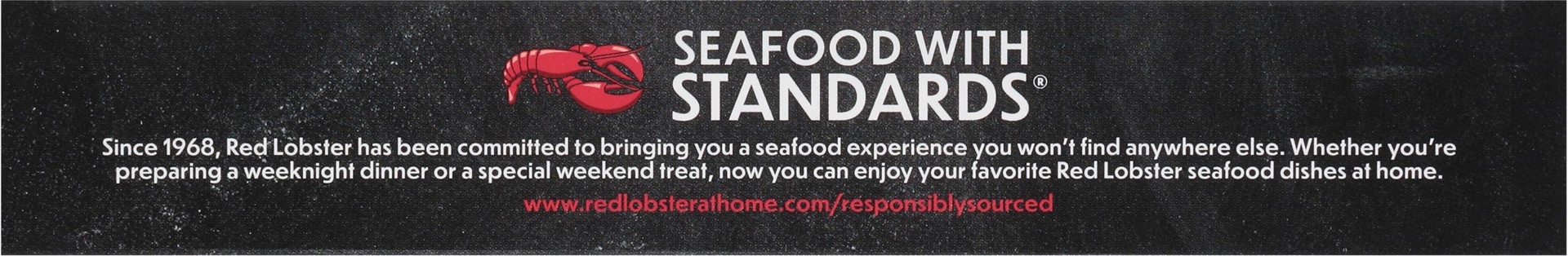 Seafood with standards. Since 1968, Red Lobster has been committed to bringing you a seafood experience you won't find anywhere else. Whether you're preparing a weeknight dinner or a special weekend t…