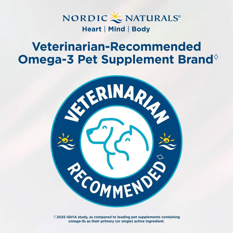 Made exclusively from 100% wild-caught, sustainably sourced fish, Nordic Naturals Omega-3 Pet™formula safely provides the daily omega-3s your dog or cat needs to live an active, happy life.