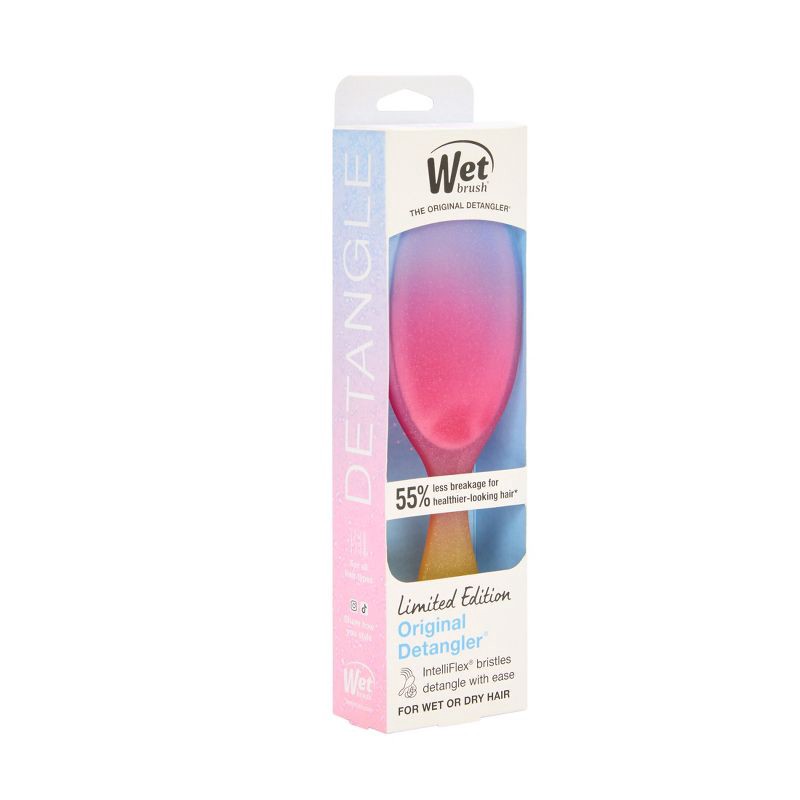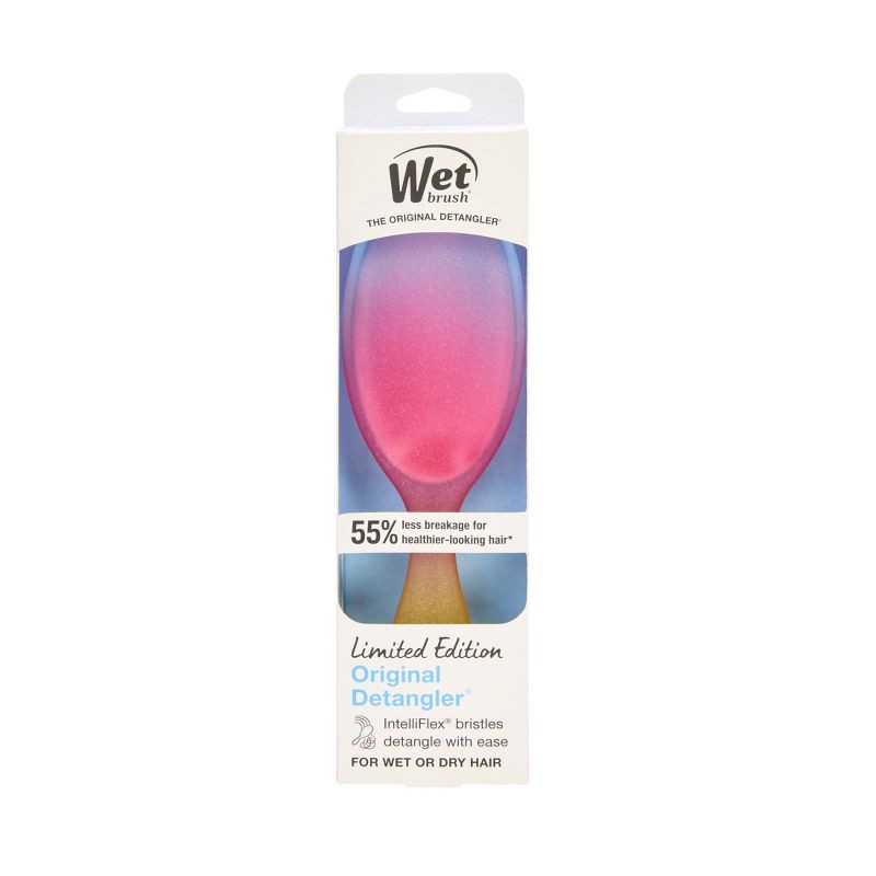 - Exclusive IntelliFlex® Bristles - Ultra-soft bristles glide effortlessly through tangles, reducing pulling and snagging for a smooth, pain-free styling experience. Designed to detangle with ease, leaving your hair looking sleek and manageable every time.55% less breakage for healthier looking hair*- Experience up to 55% less breakage with a design focused on minimizing stress and damage to each strand. Helps maintain strength and resilience, leaving hair looking smooth, manageable, and strong for everyday styling needs.Gentle on Hair & Scalp - Soft, flexible bristles deliver a soothing brushing experience that is gentle on both hair and scalp. Ideal for daily use, it helps reduce pulling and discomfort while promoting smooth, tangle-free results for all hair types.Perfect for all hair types & Everyday Styling - Ideal for straight, wavy, curly, thick or fine hair - wet or dry. This versatile brush works effortlessly across hair textures, making it the ultimate tool for daily styling, detangling and hair maintenance.Trusted Wet Brush Quality & Innovation – From the #1 detangling brand, Wet Brush combines advanced technology with proven design to deliver professional results, effortless styling, and healthier, happier hair - giving you confidence in every brush and every style.