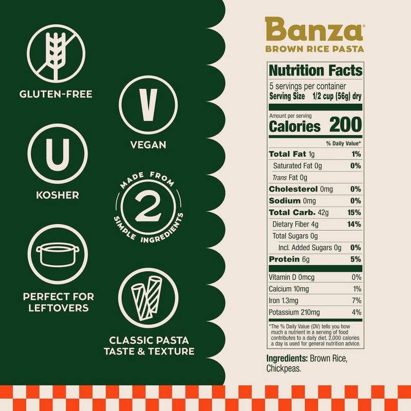 - Two Simple Ingredients – Brown Rice & Chickpeas: Clean, simple, and wholesome. Made from just brown rice and chickpeas for a naturally gluten-free, plant-based pasta alternative.