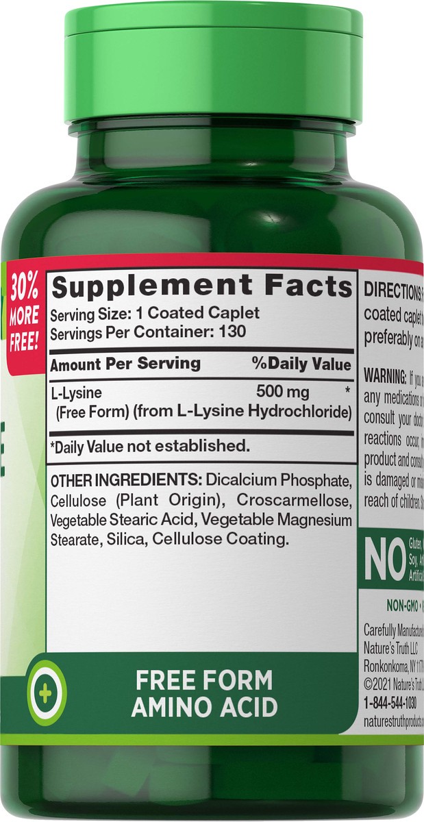 L-Lysine is an essential amino acid that acts as a building block for protein and aids in the production of collagen. Our free form L-Lysine provides you with 500 mg of this essential nutrient per ser…
