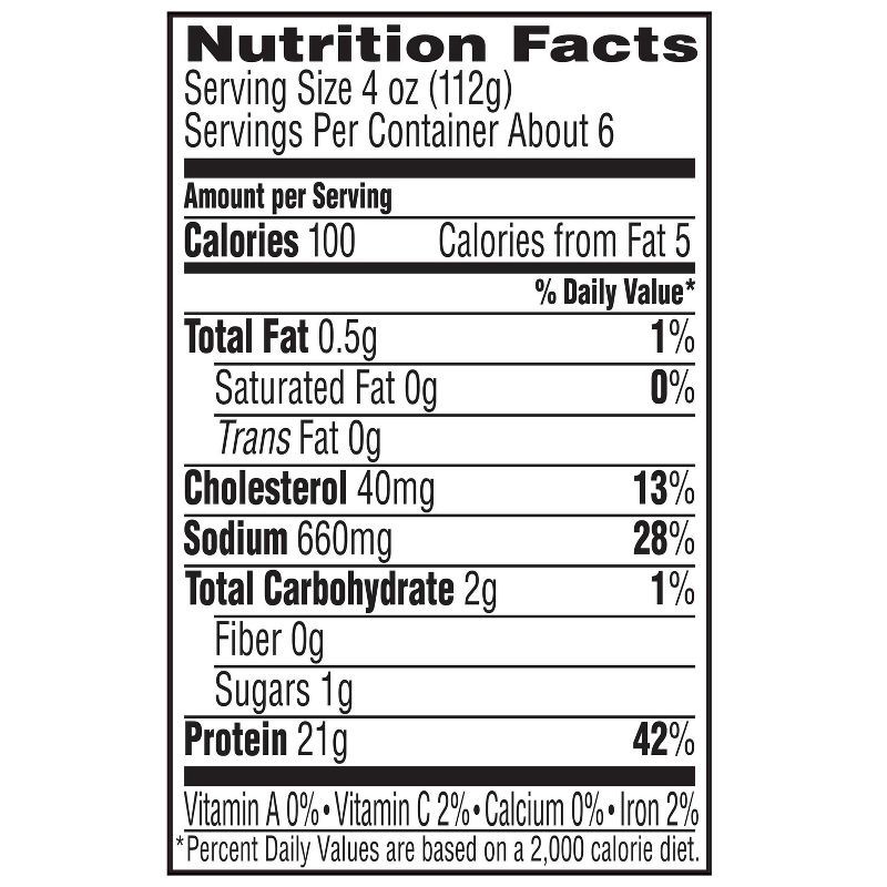 - 21 grams (42% daily value) of protein per serving, 99% fat free, gluten free and never contain added hormones or steroids. (Federal regulations prohibit the use of hormones in poultry)