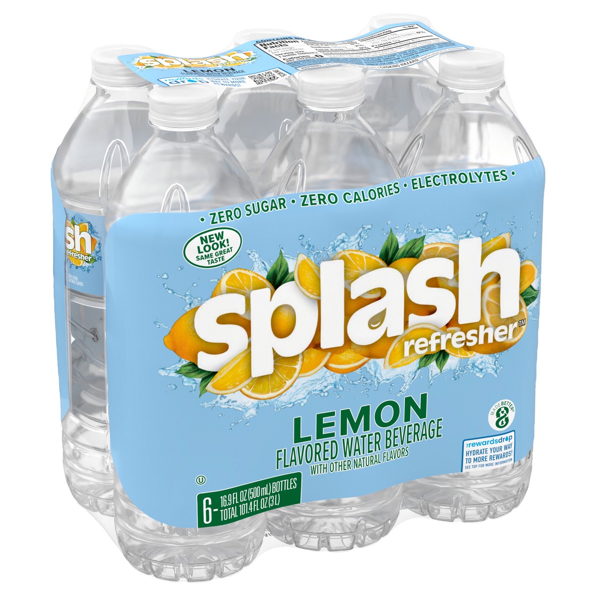 Splash Blast, Flavored Water Beverage, Lemon Flavor, 16.9 FL OZ Plastic Bottles (6 Count)
