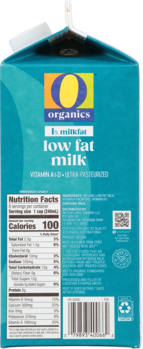 Organic Low Fat Milk, Vitamin A Palmitate, Vitamin D3.