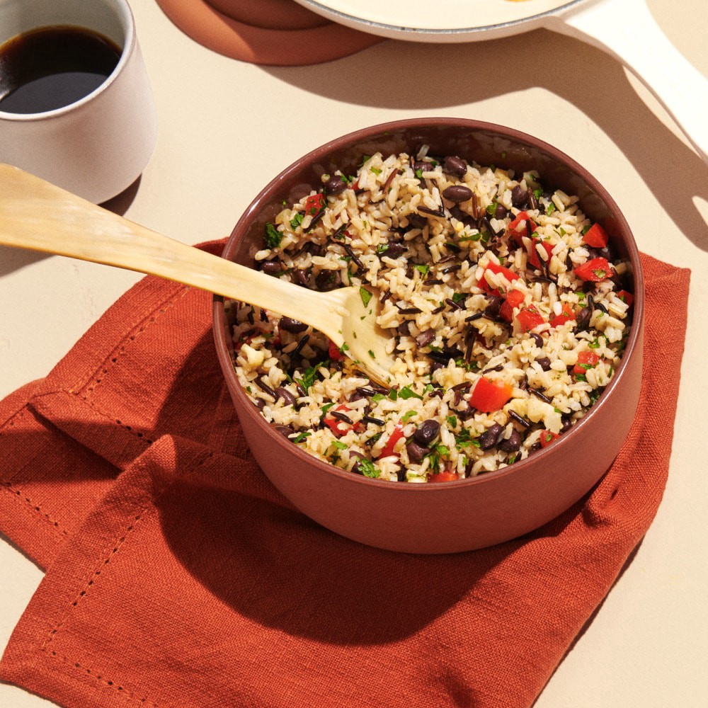 Organic Brown Rice, Black Beans, Wild Rice, Organic Cauliflower Rice, Organic Red Bell Peppers, Organic Extra Virgin Olive Oil, Organic Cilantro, Organic Onion Powder, Organic Garlic Powder, Himalayan…