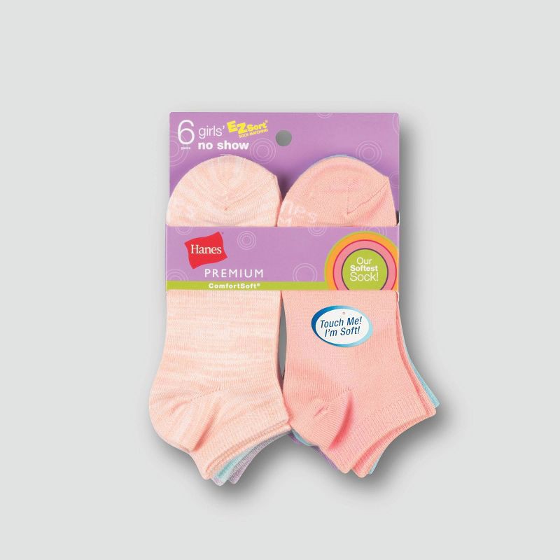 Our Softest Sock! Make sure her socks stay comfortable throughout her activity-filled days with the Hanes Premium ComfortSoft Girls' No-Show Socks. Silky soft, ComfortSoft fabric is blended with spand…