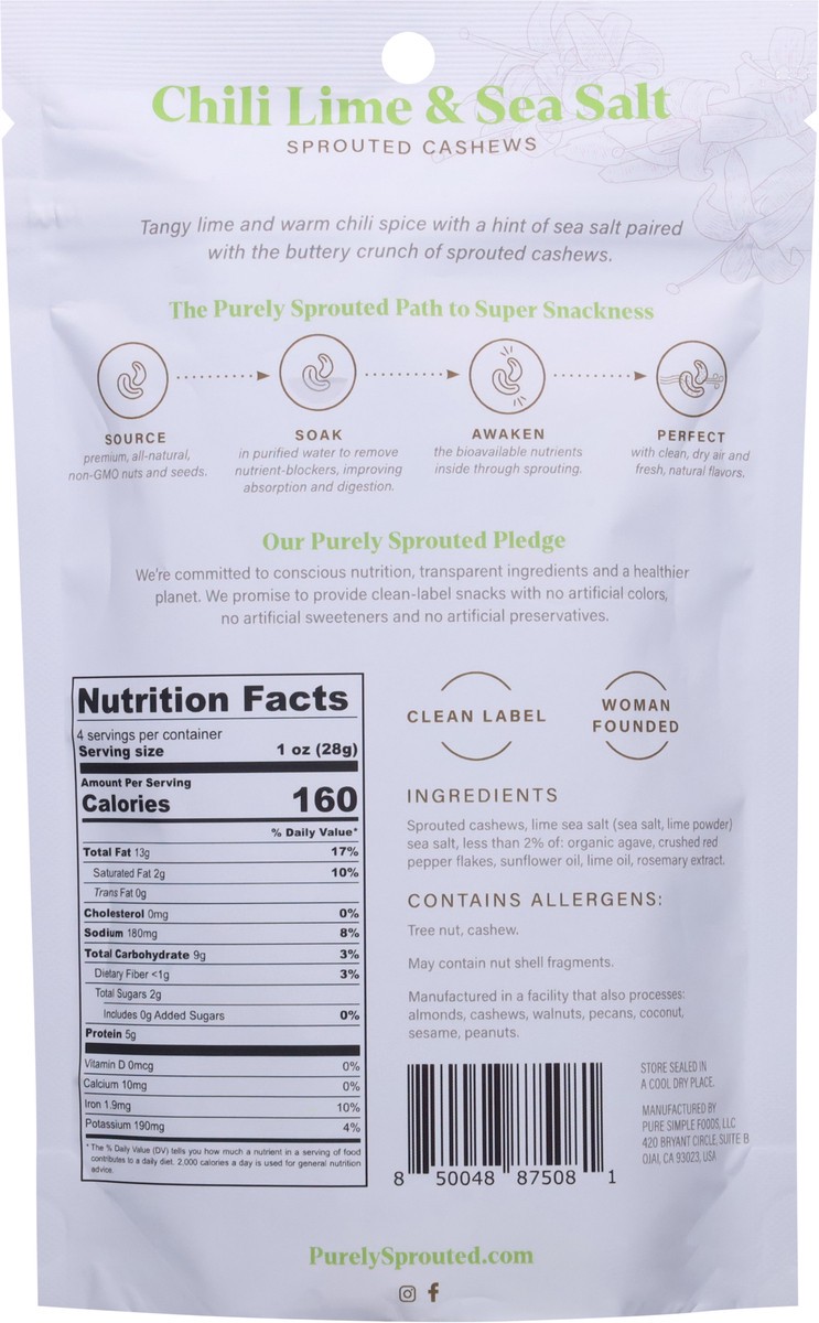 Purely Sprouted Chili Lime & Sea Salt Sprouted Cashews 4 oz