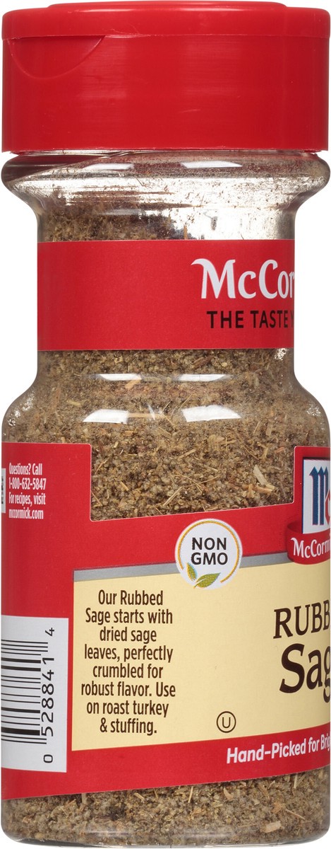 McCormick Rubbed Sage starts with dried sage leaves, perfectly crumbled for robust flavor. Use at holiday time to season roast turkey, stuffing and gravy, as well as in everyday meals like chicken pot…