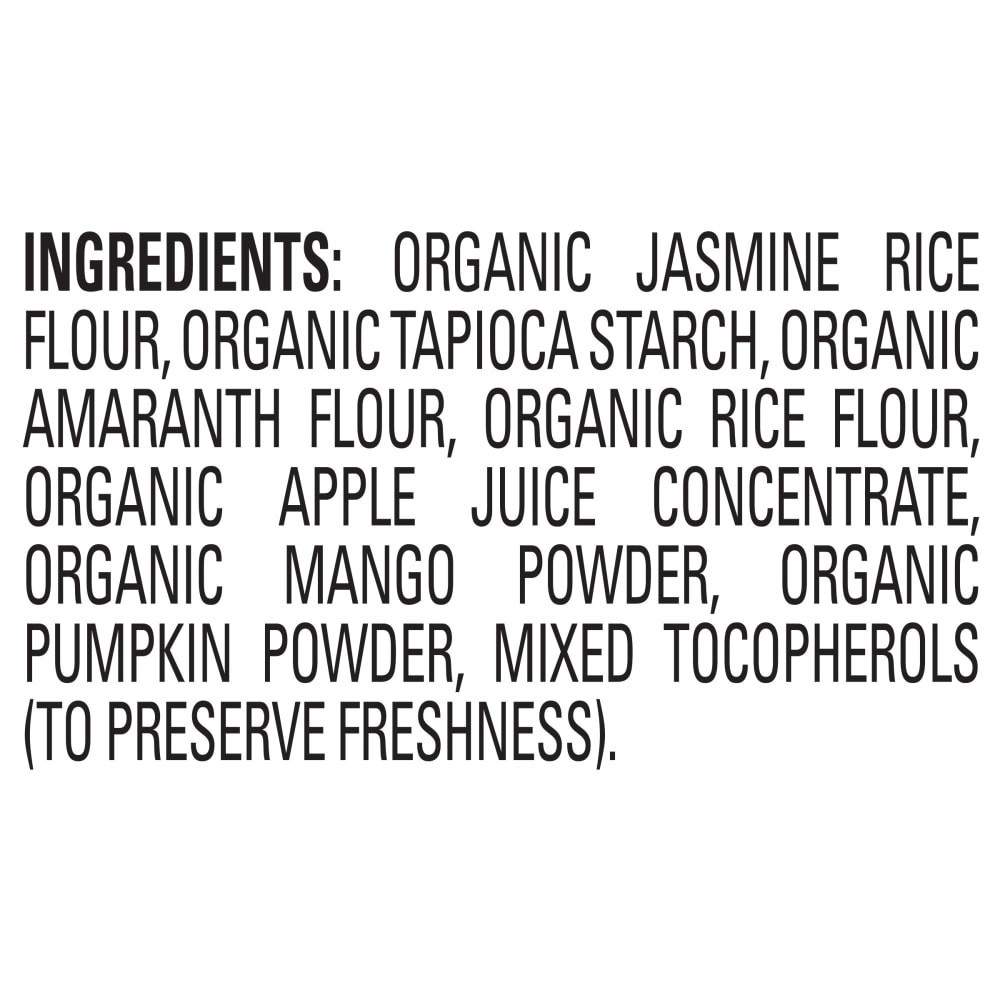 Organic Jasmine Rice Flour, Organic Tapioca Starch, Organic Amaranth Flour, Organic Rice Flour, Organic Apple Juice Concentrate, Organic Mango Powder, Organic Pumpkin Powder, Mixed Tocopherols (to Pre…