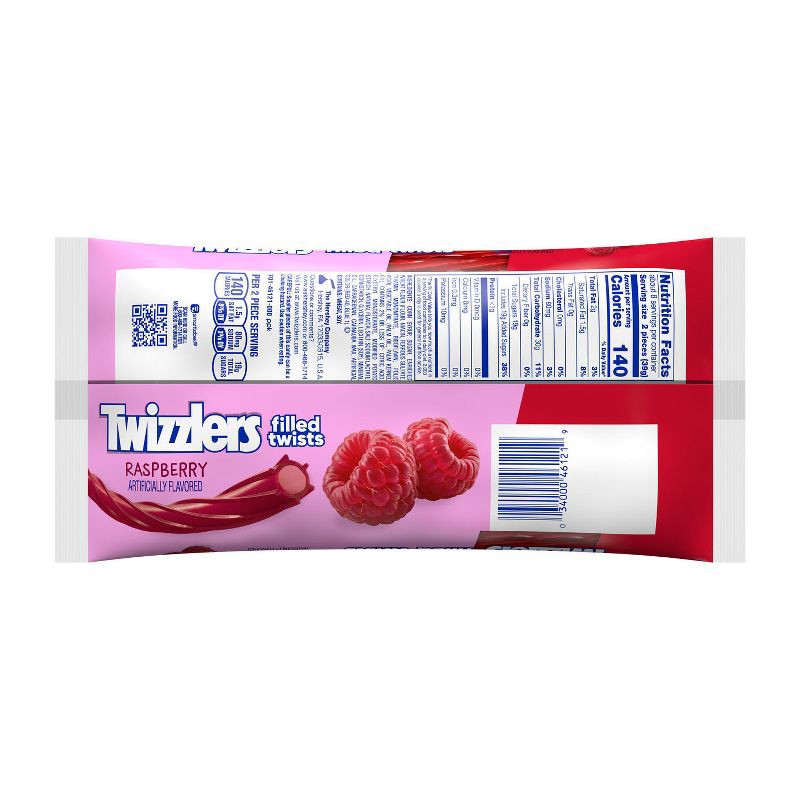 - Contains one (1) 11-ounce bag of TWIZZLERS Filled Twists Raspberry Flavored Licorice Style Chewy Candy