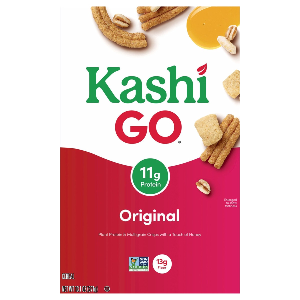 Treat yourself to the delicious taste of sweetened, honey-toasted whole grain puffs, crunchy cereal sticks, and crispy soy protein squares in every bite of Kashi GO Original breakfast cereal. Whether …