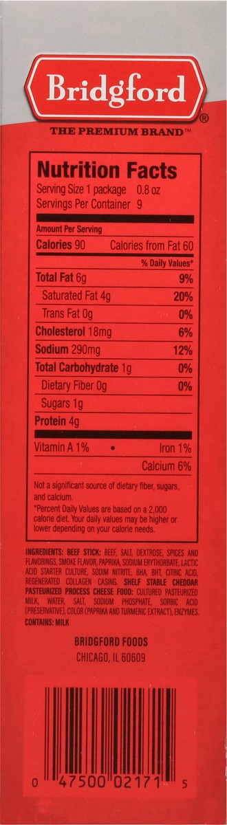 Bridgford Original Beef Stick & Cheddar - 9 x 0.8 oz Packs
